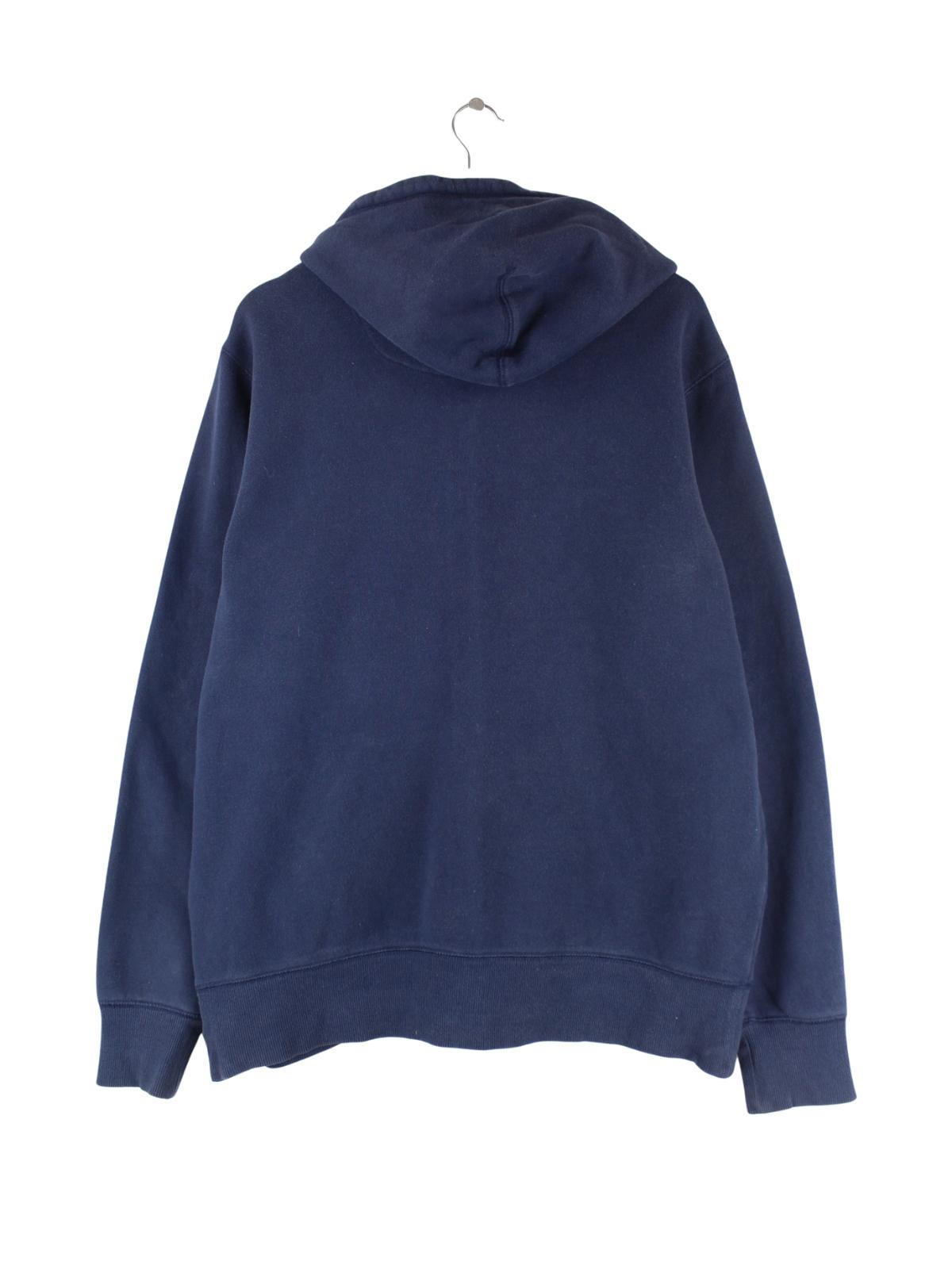 Hoodie vom Label Nike mit Stick und langem Reißverschluß in Größe XL. Er ist aus einer Baumwollmischung hergestellt und in Blau im Bestand.