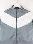 Graue Trainingsjacke vom Label Nike in Größe M. Sie ist aus Synthetik und in sehr gutem Zustand bei uns zu bekommen.