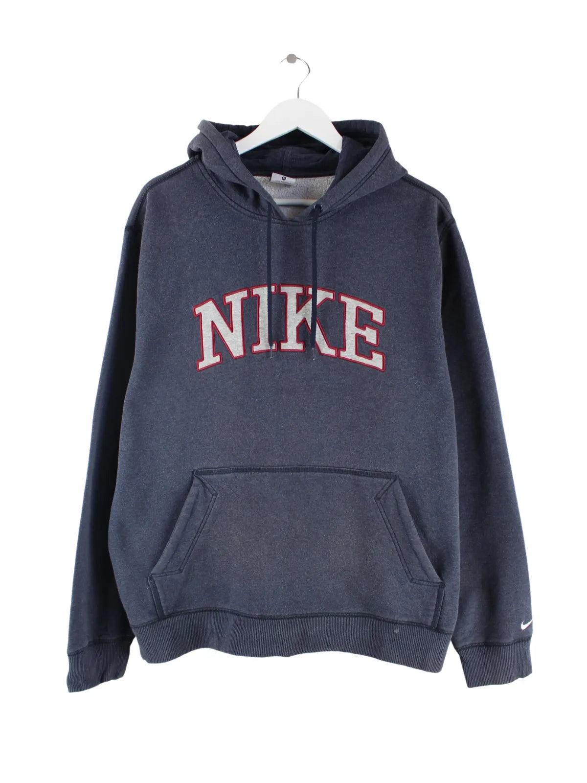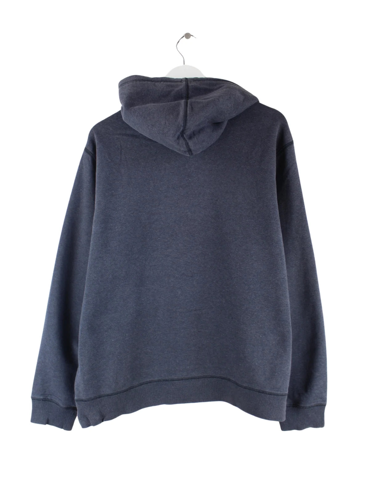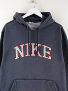 Blauer Hoodie mit Stickereien der Brand Nike in Größe XL. Er ist aus einer Baumwollmischung gefertigt und in sehr gutem Zustand vorrätig.