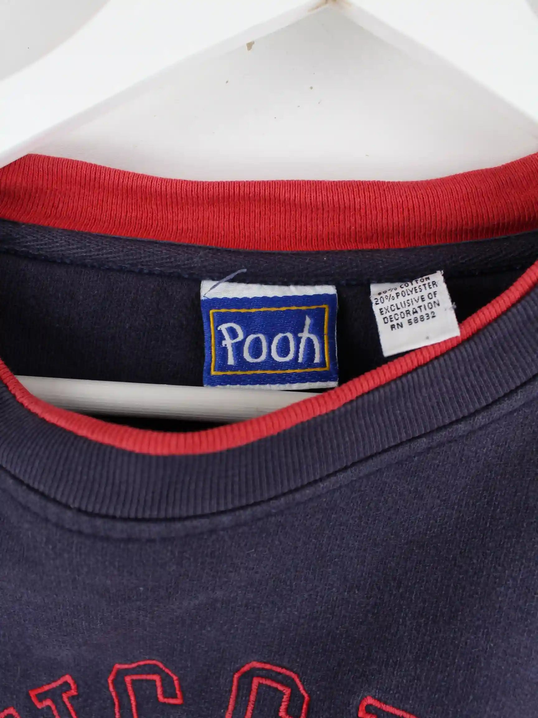 Sweater der Brand Pooh mit Stick in Größe M aus den 90'ern. Er ist aus einer Baumwollmischung gefertigt und in Blau auf Lager.
