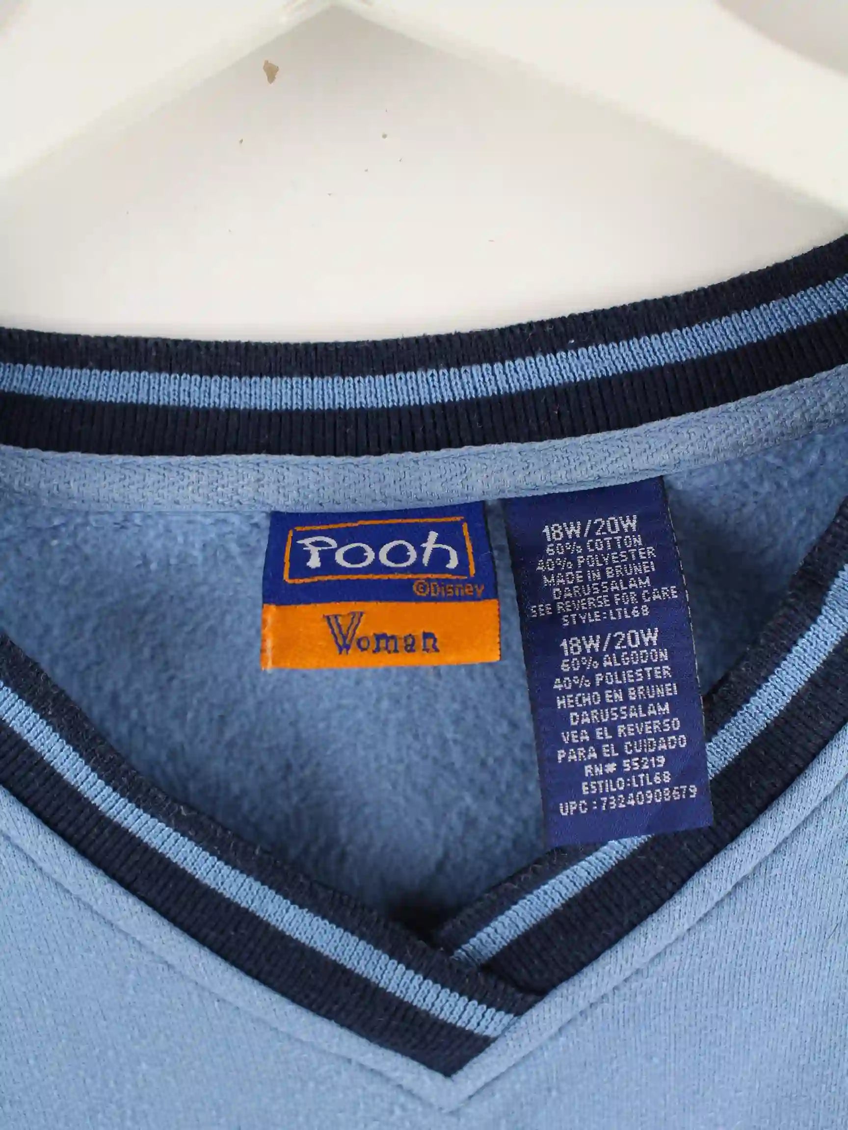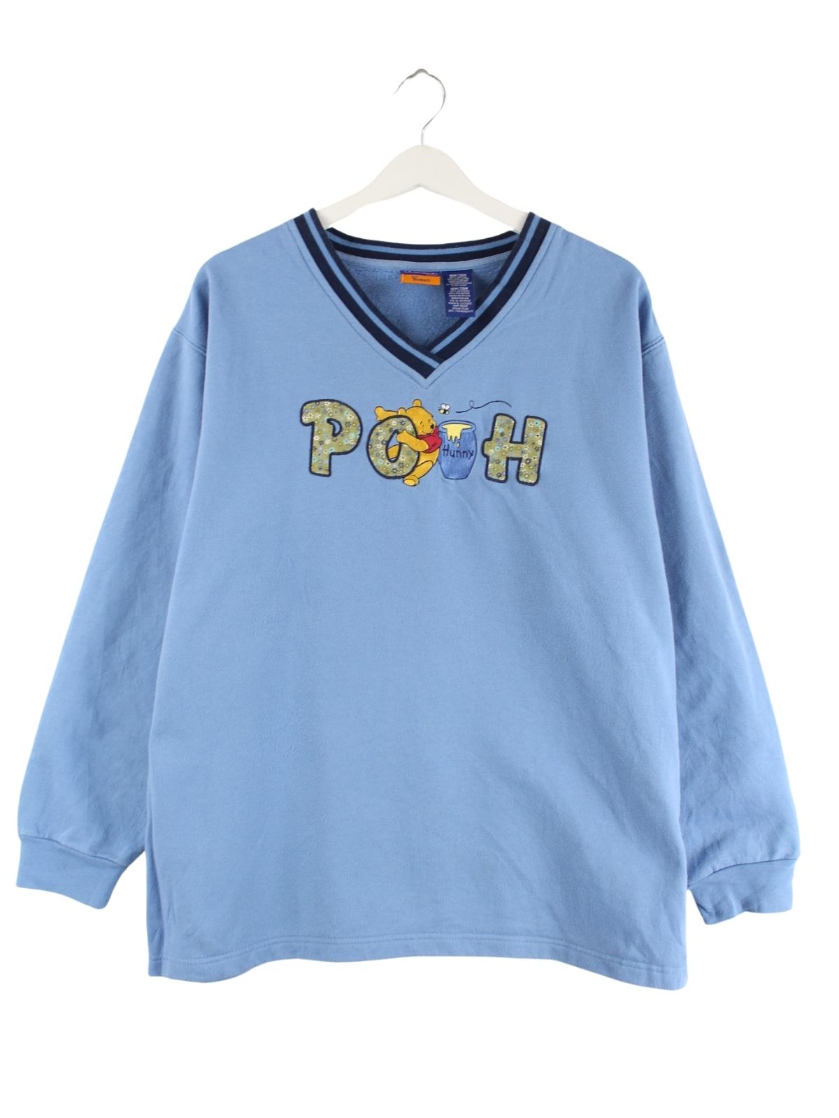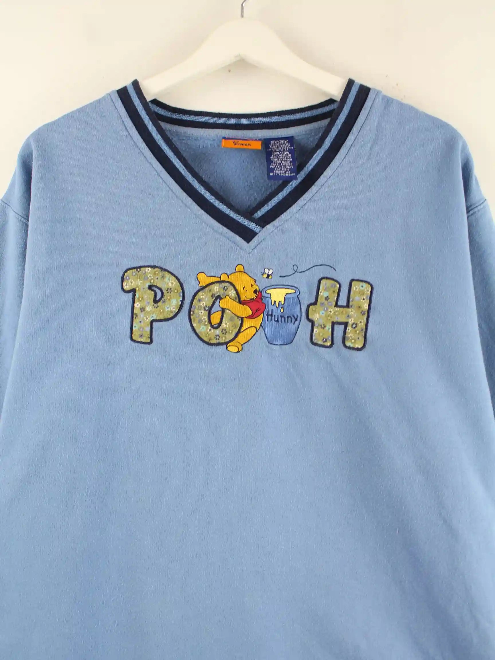 Pooh Damen 90s Vintage Honey Embroidered V-Neck Sweater Blau XL