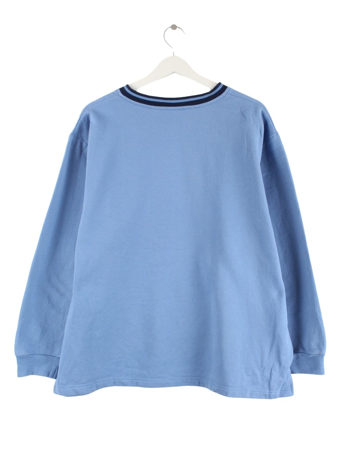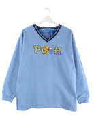 Blauer Sweater mit Stick aus dem Hause Pooh aus den 90'ern in Größe XL. Er ist aus einer Baumwollmischung angefertigt und in sehr gutem Zustand lieferbar.