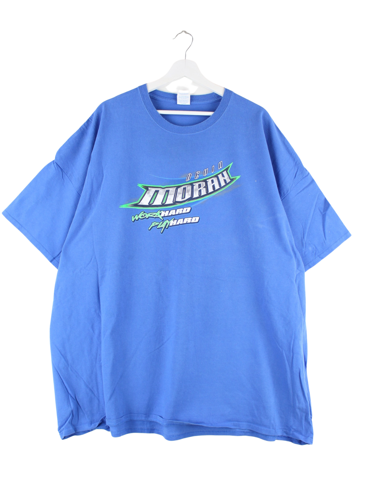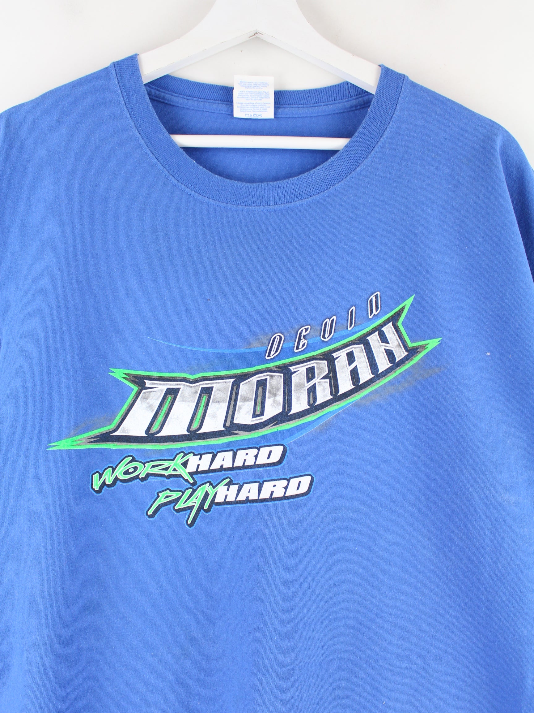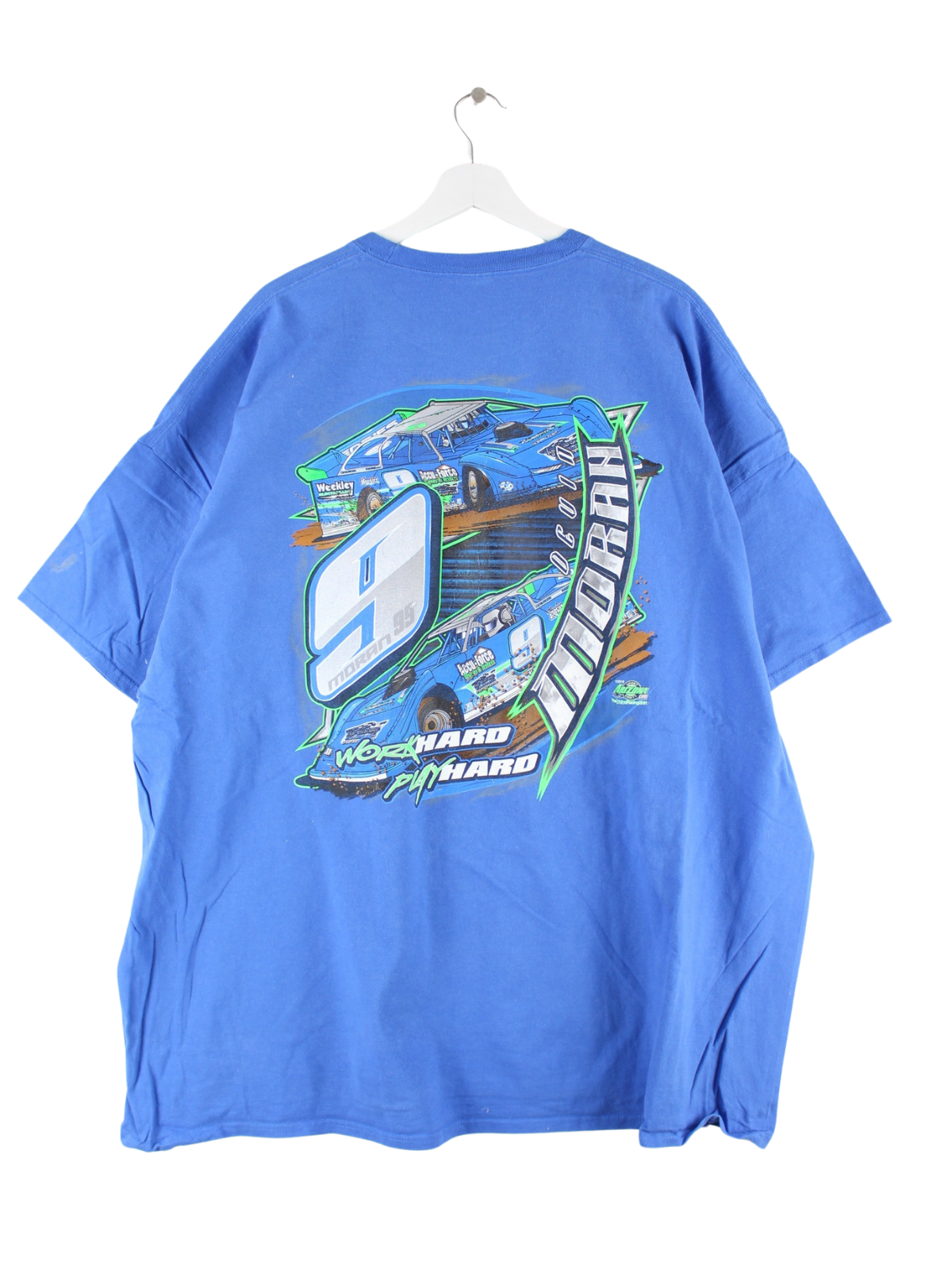 T-shirt from the brand Port & Company in size 5XL. It is made of cotton and available in blue. With a rare racing print.
