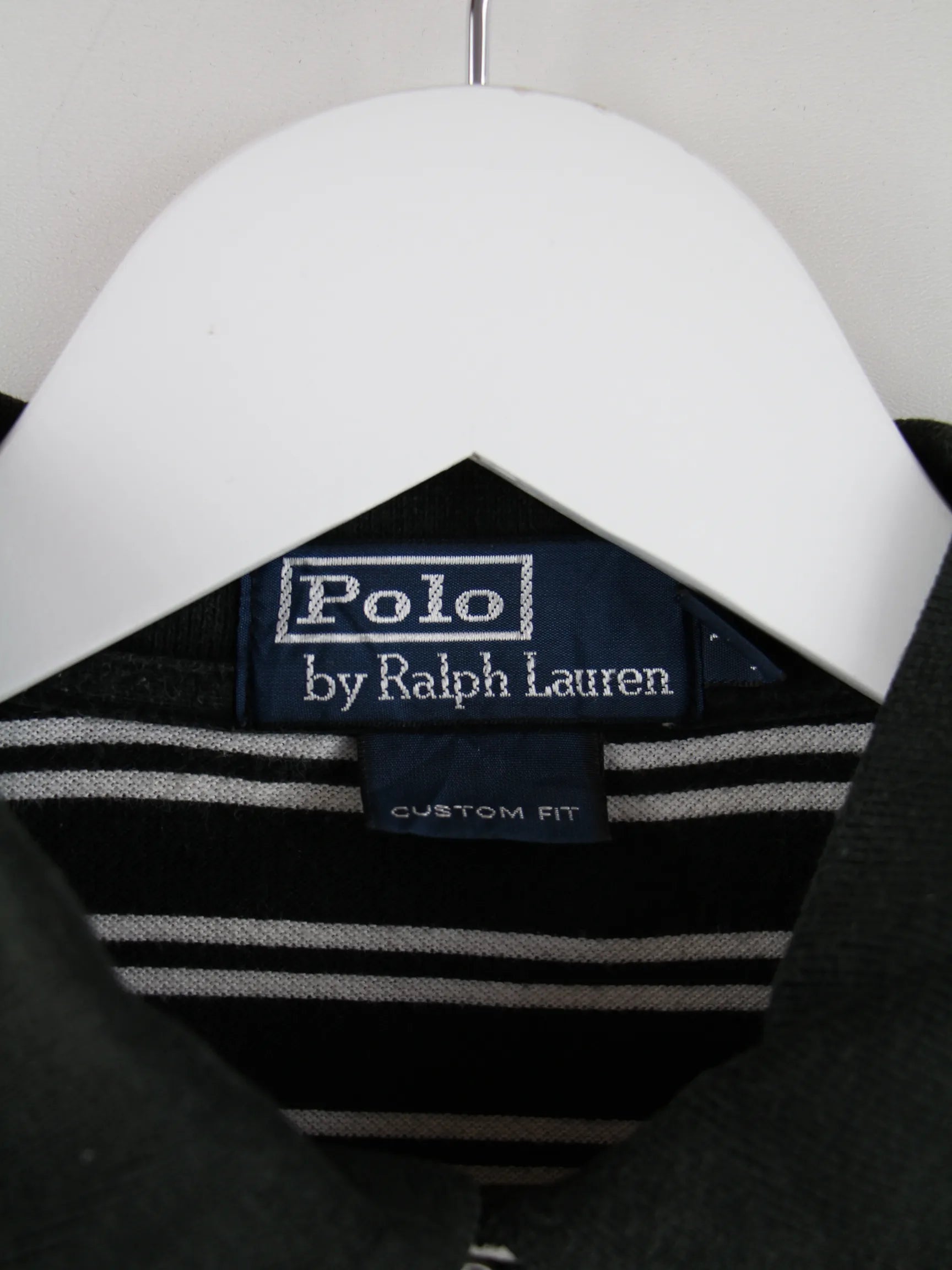 Ralph Lauren 00s Stripe Custom Fit Polo Schwarz XL