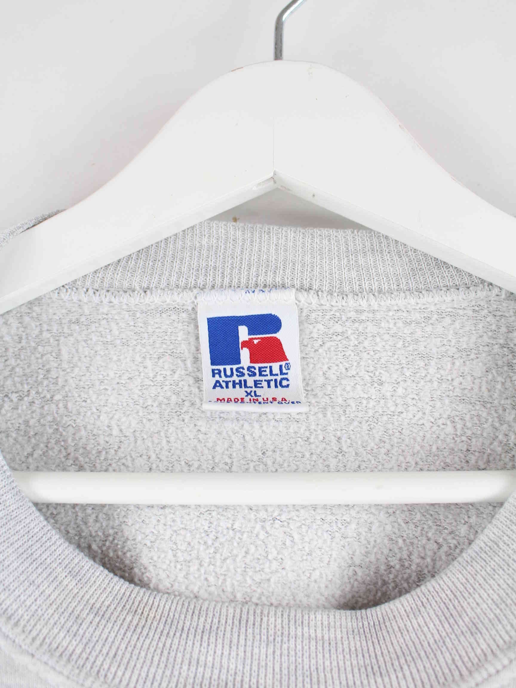 Sweater from Russell Athletic in size M from the 90's. It is made of a cotton blend and is available from us in grey. With a rare Warriors print.