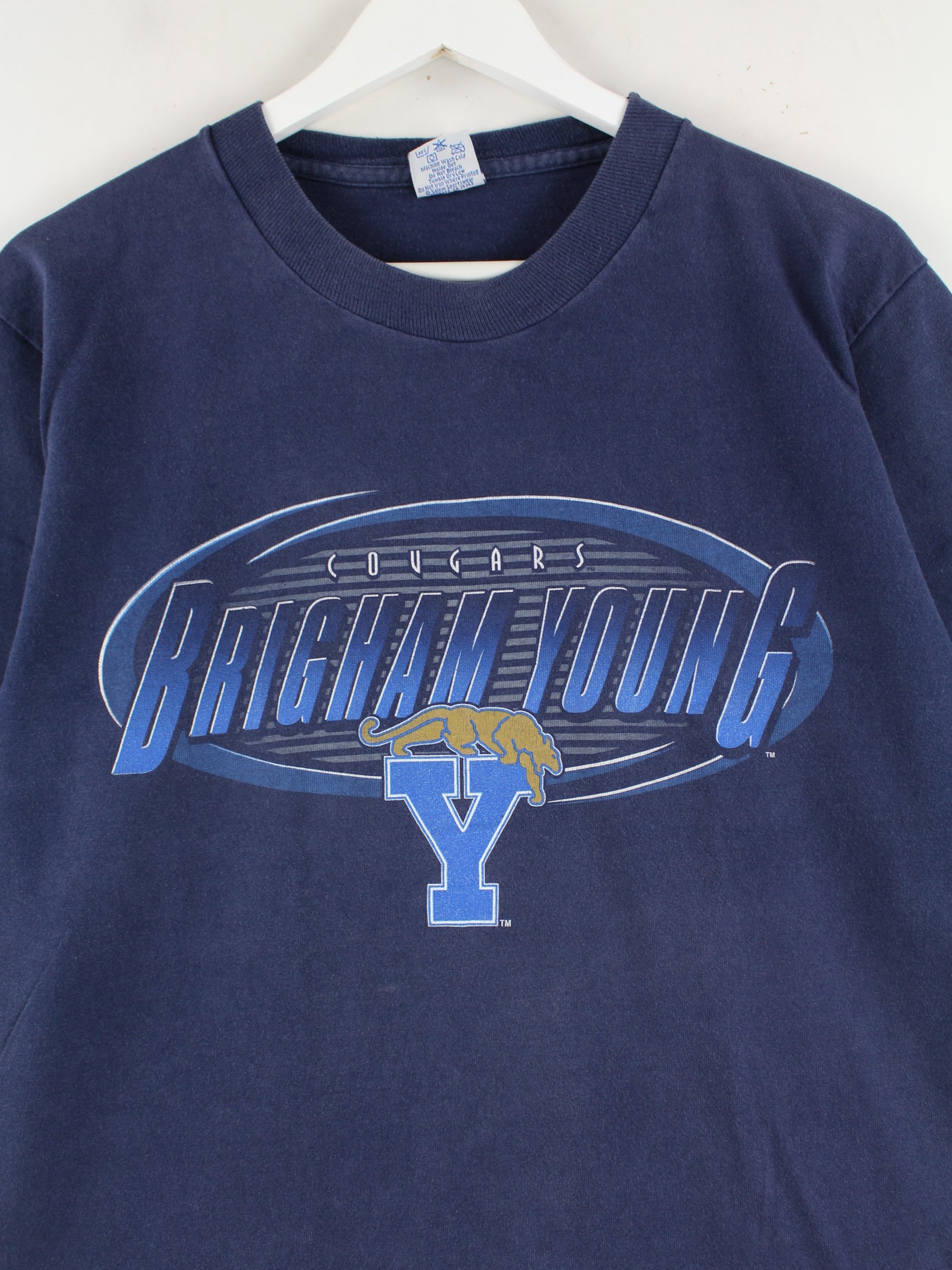 Salem Sportswear 90s Vintage Brigham Young Cougars Single Stitch T-Shirt Blau M