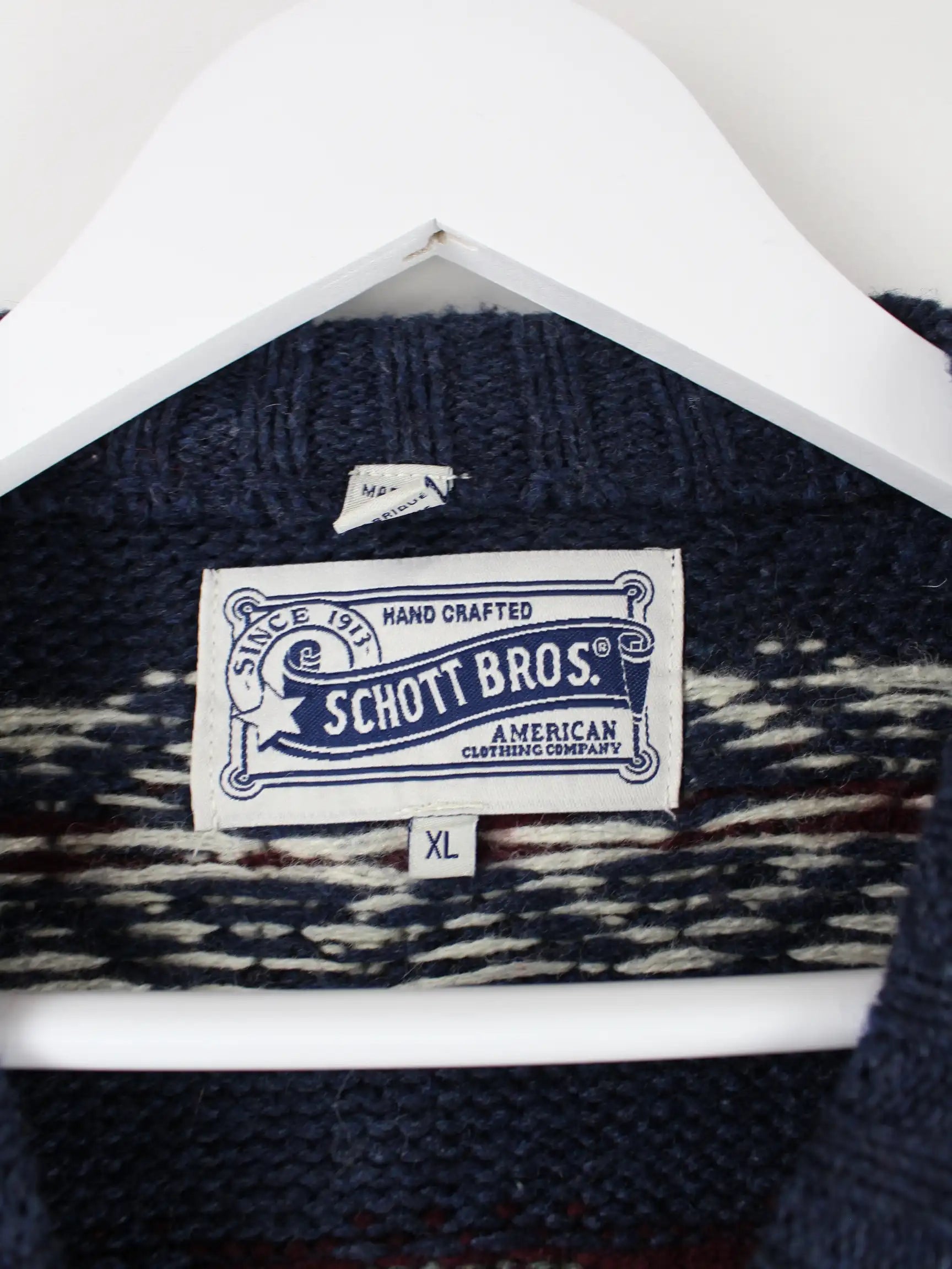 Schott 90s Vintage Pattern Pullover Blau XXL