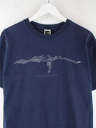 T-Shirt der Brand The North Face in Größe S. Es ist aus einer Baumwollmischung und in Blau im Angebot. Mit tollem Print.