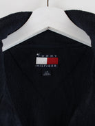 Blauer Sweater mit halbem Reißverschluß der Marke Tommy Hilfiger aus den 90'ern in Größe L. Er ist aus angenehmem Fleece angefertigt und in sehr gutem Zustand bei uns zu bekommen.