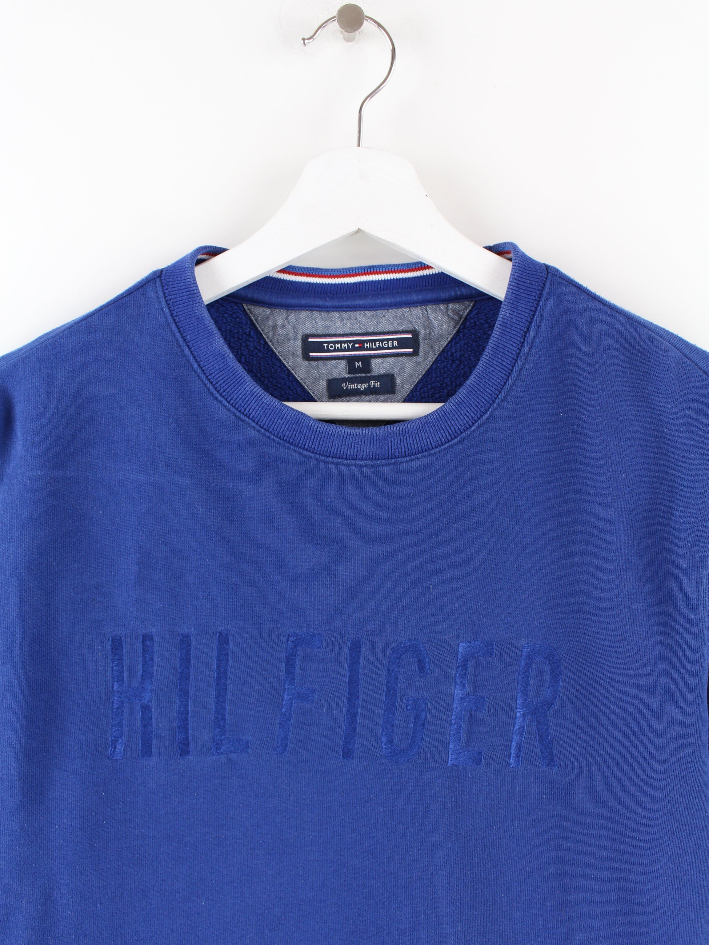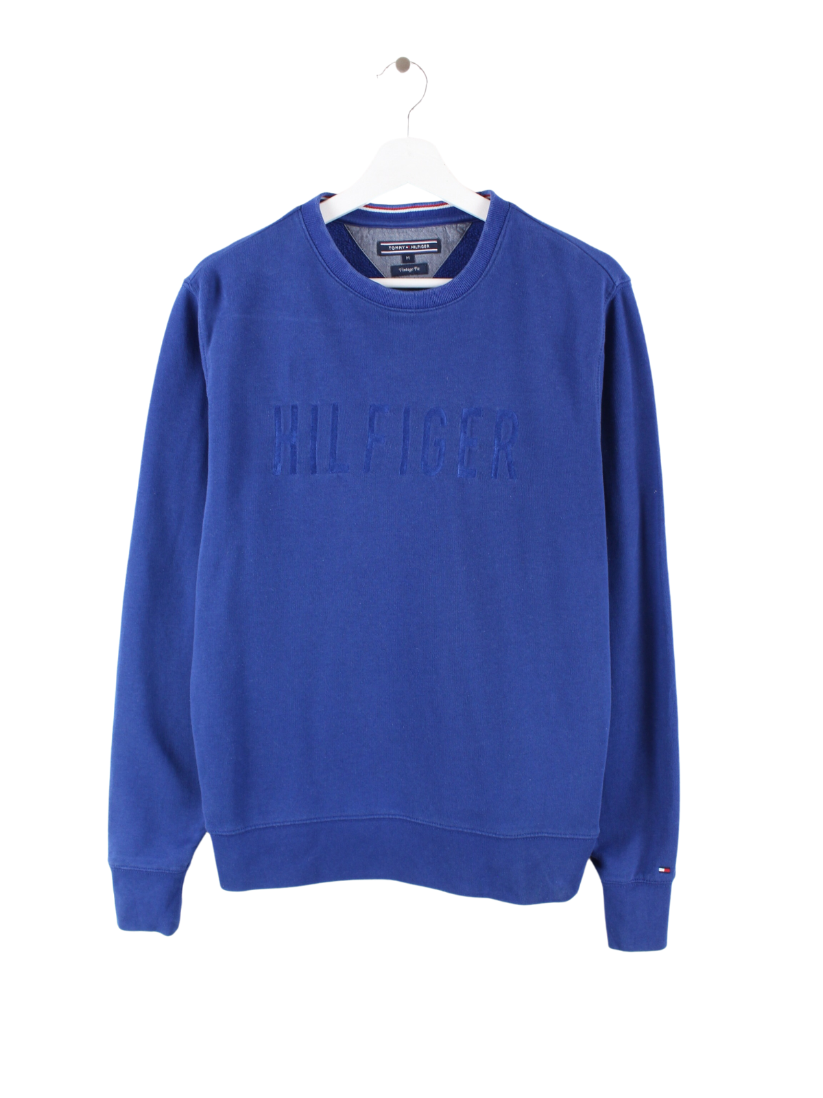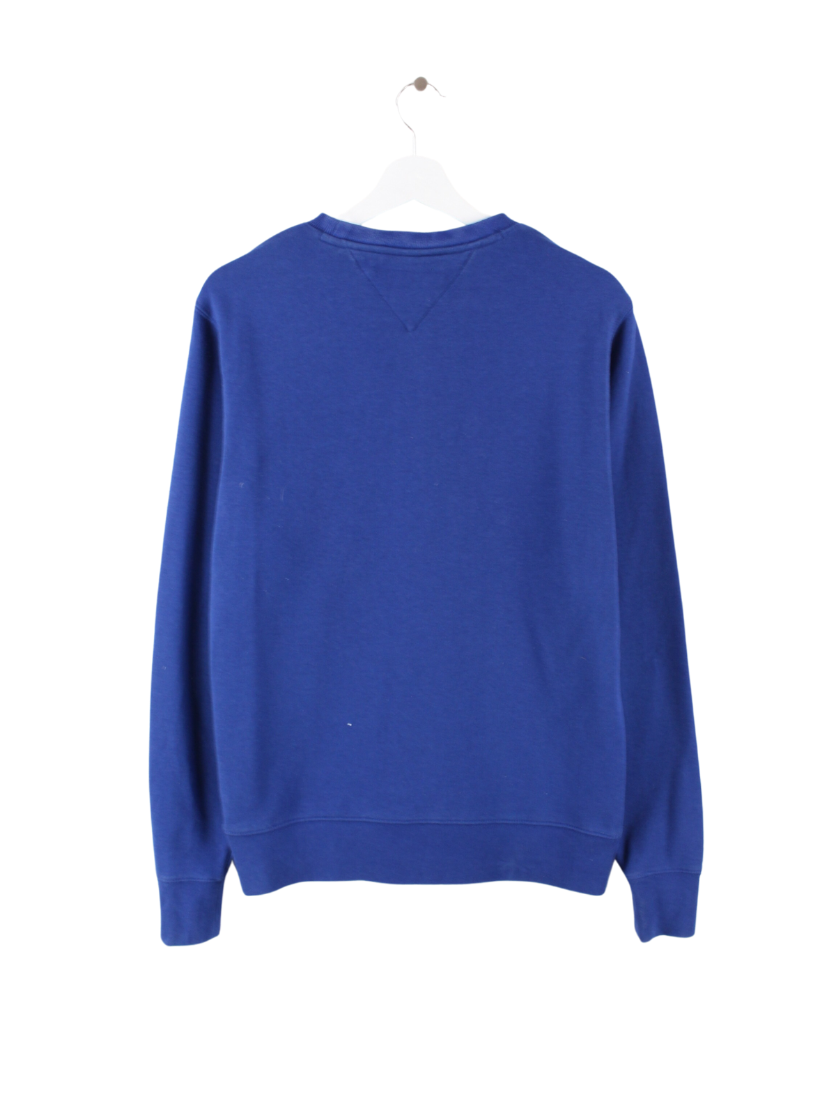 Blue Tommy Hilfiger sweater with embroidered logo.