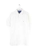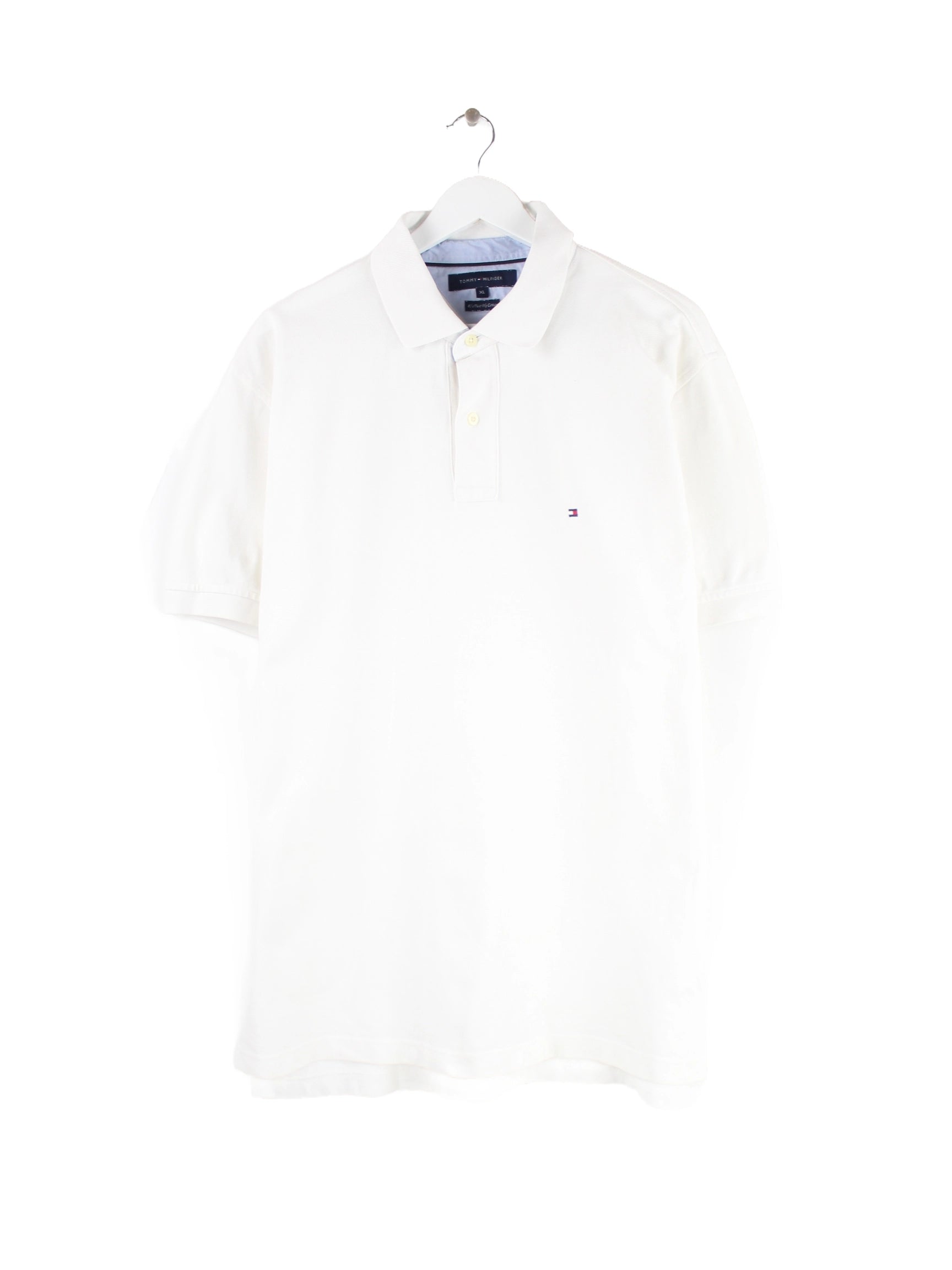 Weißes Poloshirt vom Label Tommy Hilfiger in Größe XL. Es ist aus Baumwolle produziert. Den Zustand würden wir als 'In Ordnung' bezeichnen (vergl. Bilder).