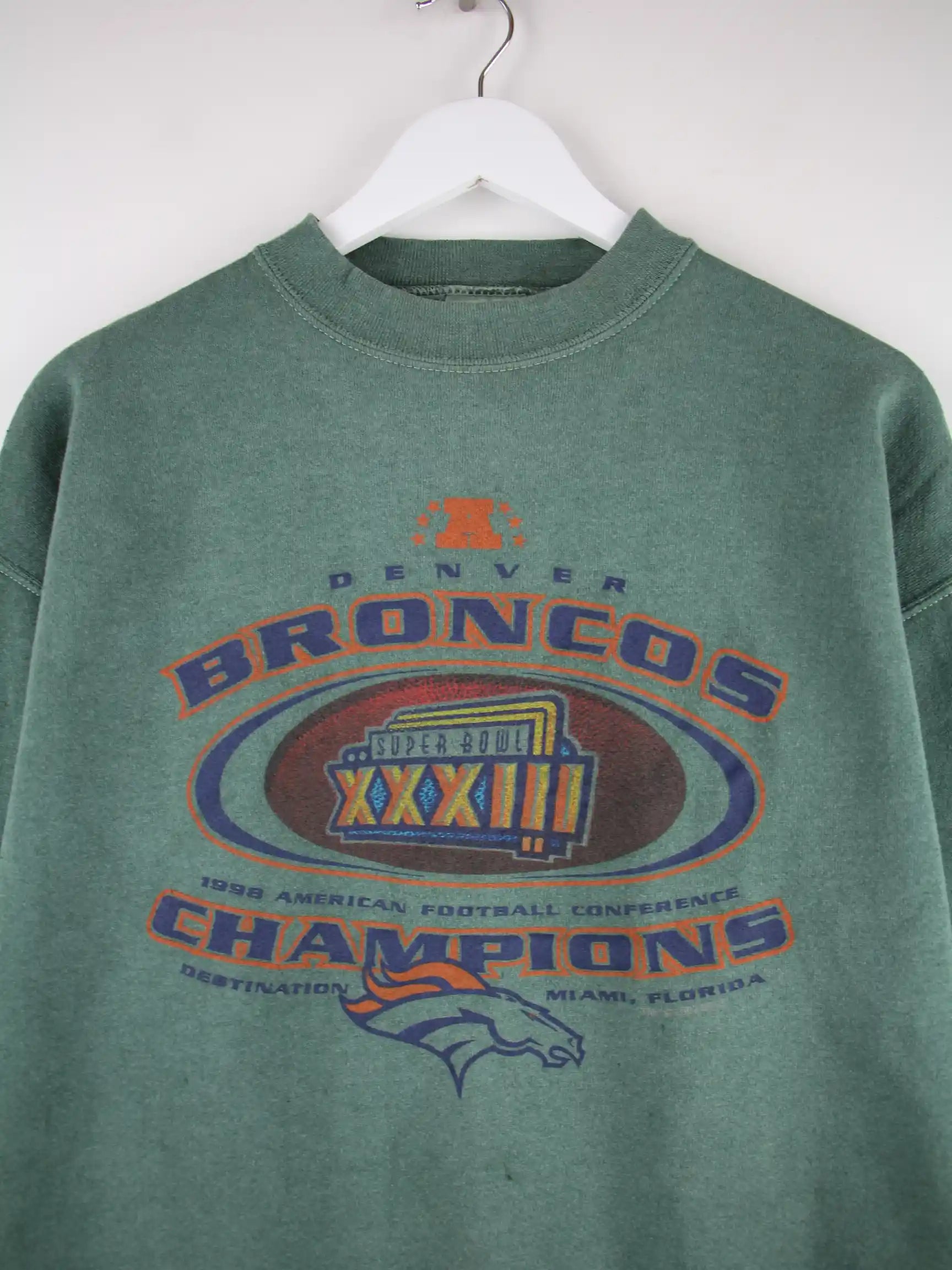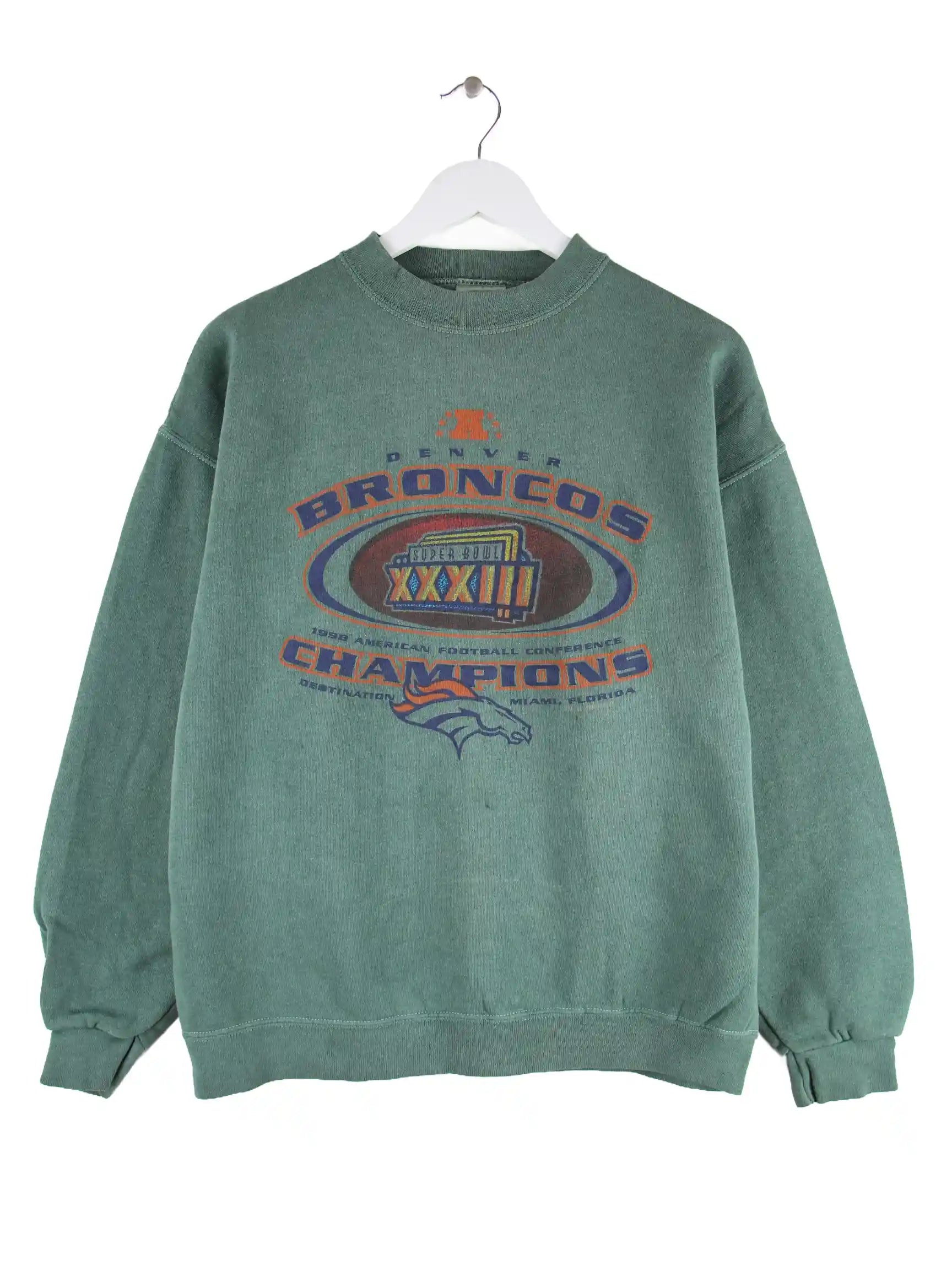 Tultex 1998 Vintage NFL Denver Broncos Super Bowl Print Sweater Grün L