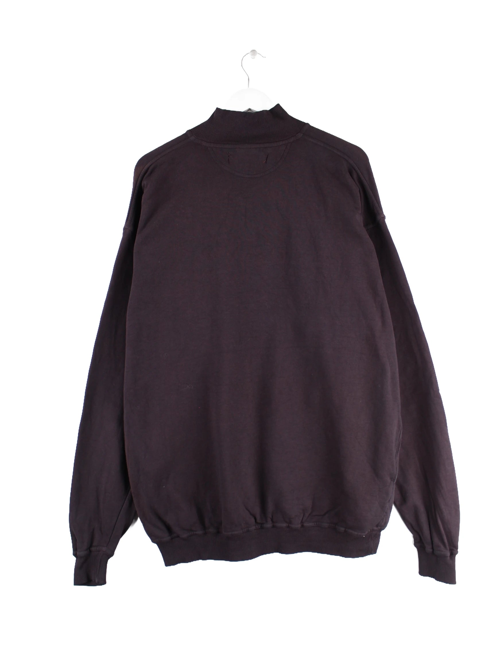 Vintage Sweater mit halbem Reißverschluß in Größe L. Er ist aus einer Baumwollmischung produziert und in Braun vorrätig.