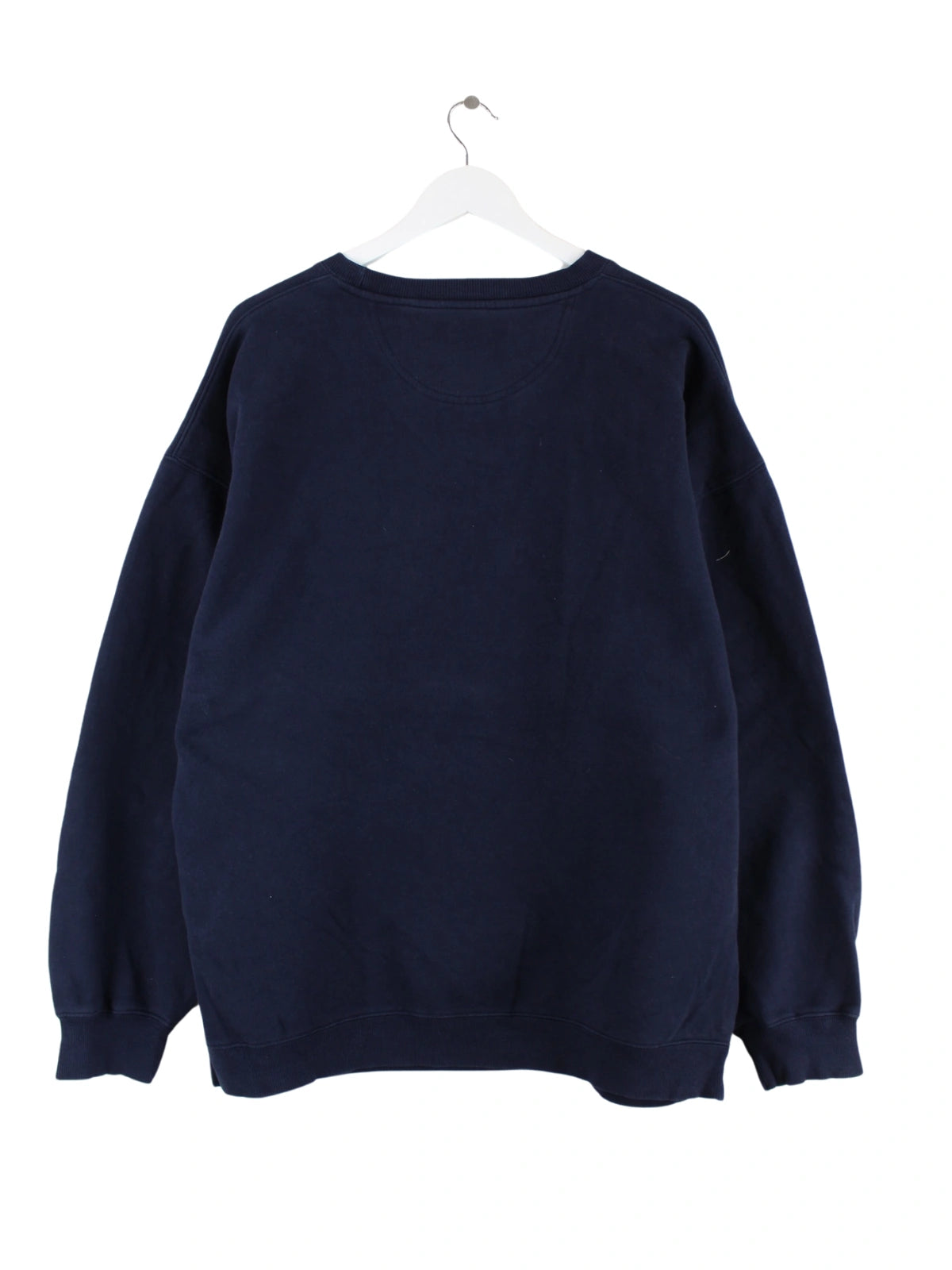 Blauer Vintage Sweater mit gesticktem Logo in Größe XL. Er ist aus einer Baumwollmischung und in sehr gutem Zustand lieferbar.