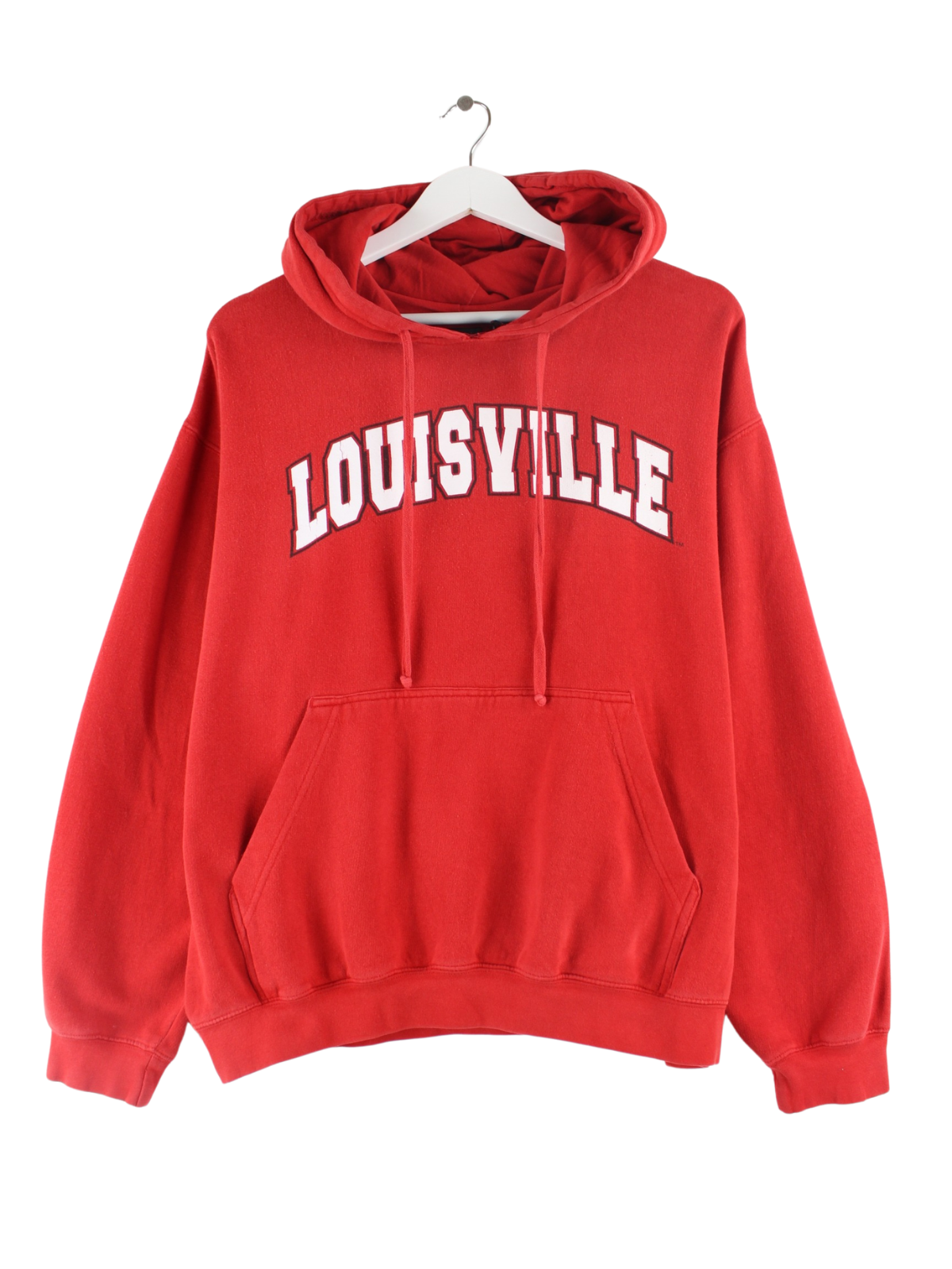 Red vintage hoodie in size M. It is made from a cotton blend and is in very good condition. With a chic Louisville print.