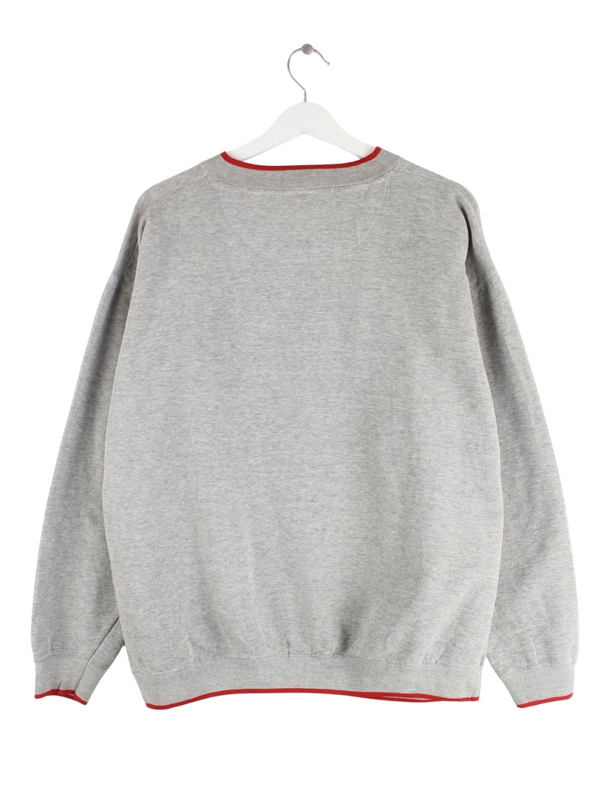 Grauer Vintage Sweater in Größe M. Er ist aus einer Baumwollmischung produziert und in sehr gutem Zustand zu haben.