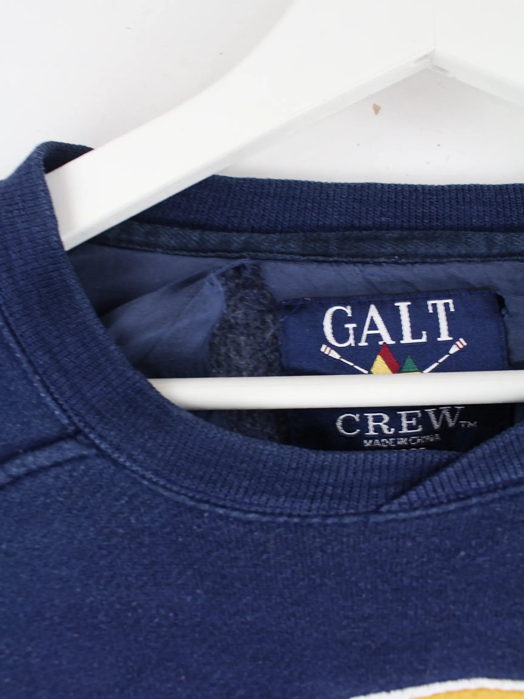 Vintage Sweater mit Stick in Größe L. Er ist aus einer Baumwollmischung und in Blau auf Lager.
