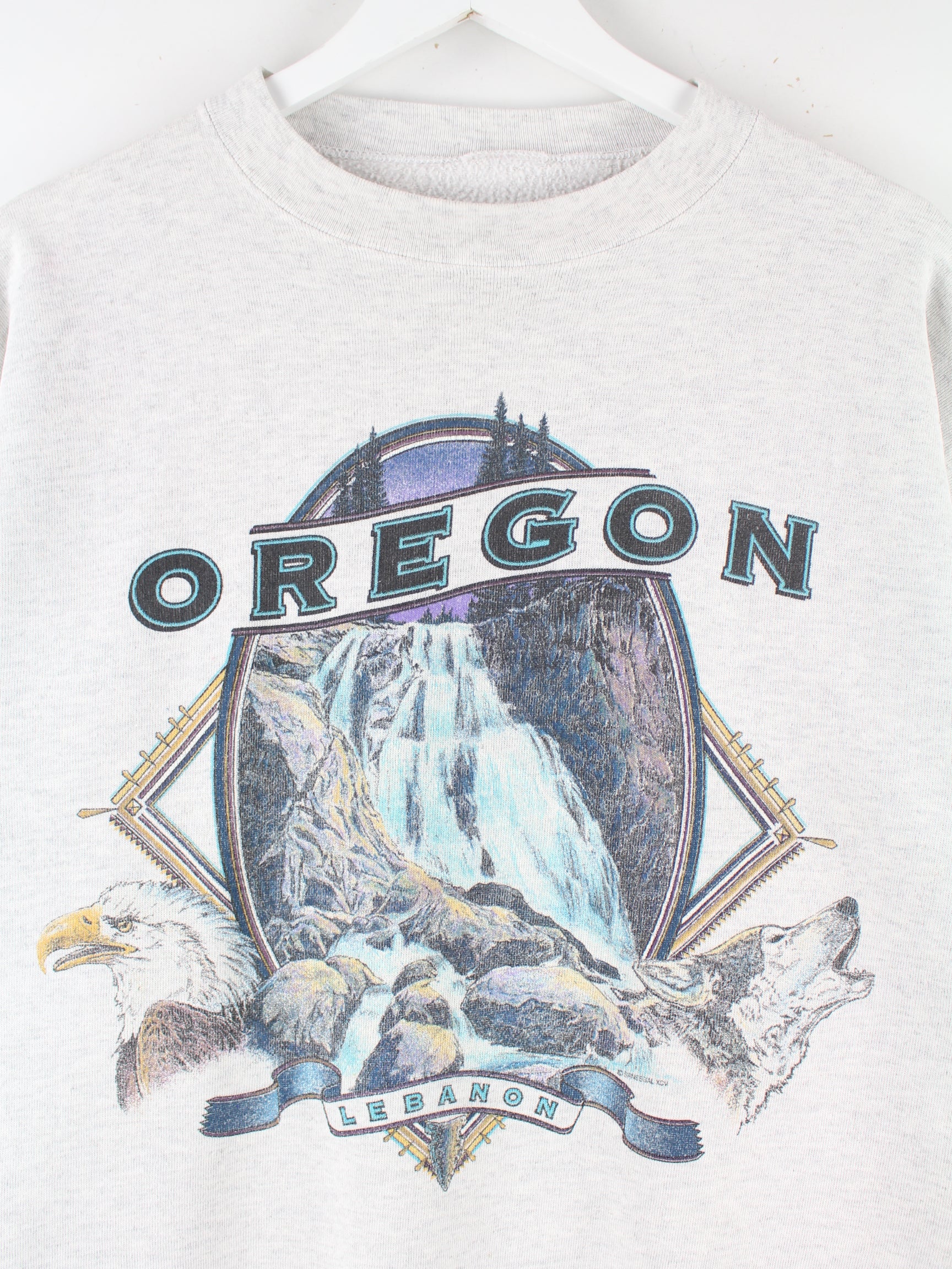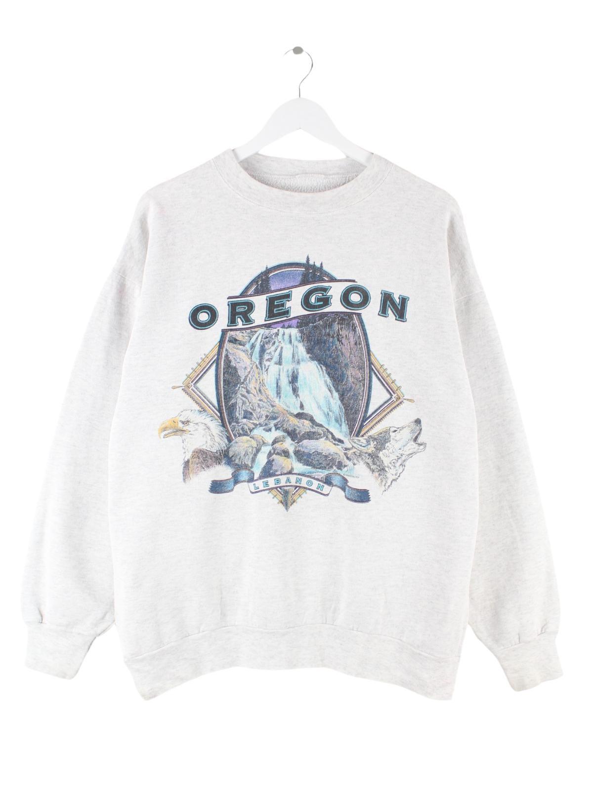 Vintage 00s Oregon Lebanon Print Sweater Grau XL