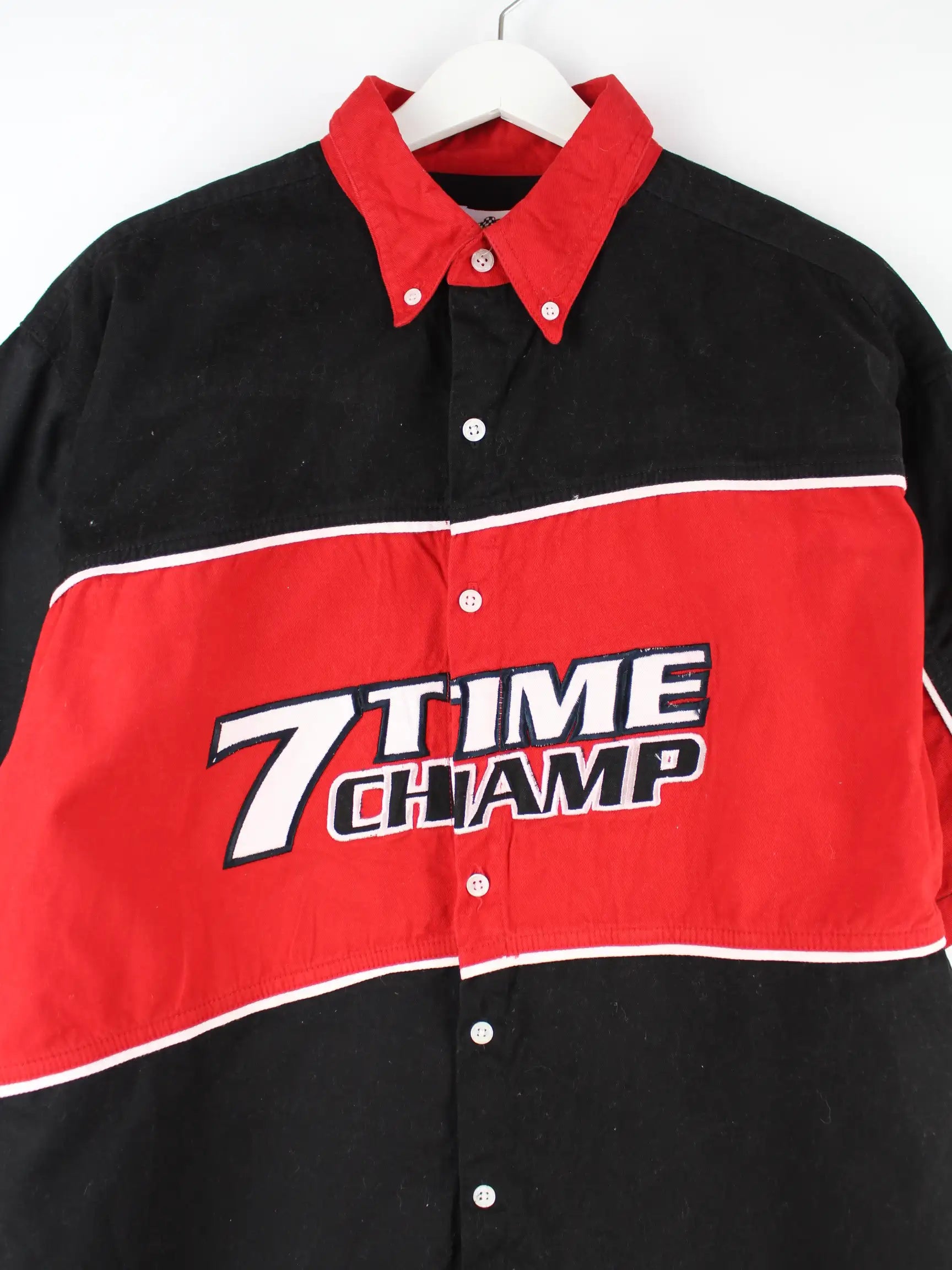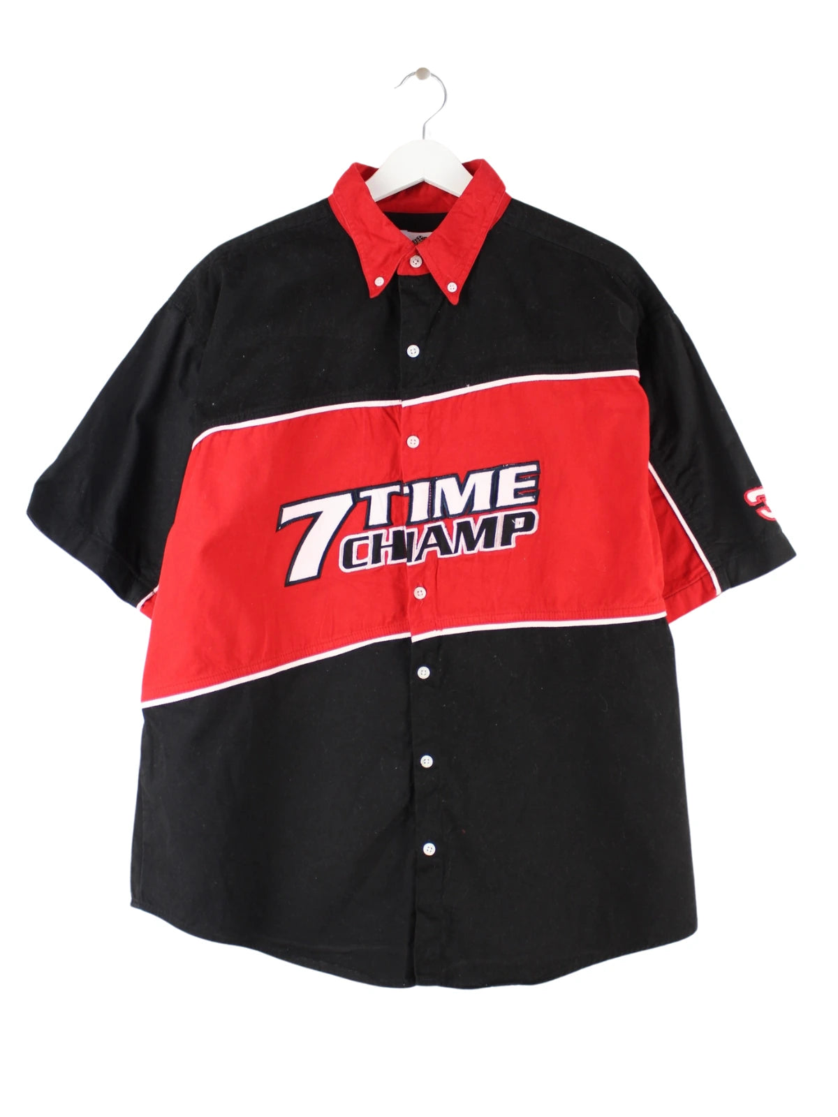 Vintage 00s Racing Kurzarm Hemd Schwarz L