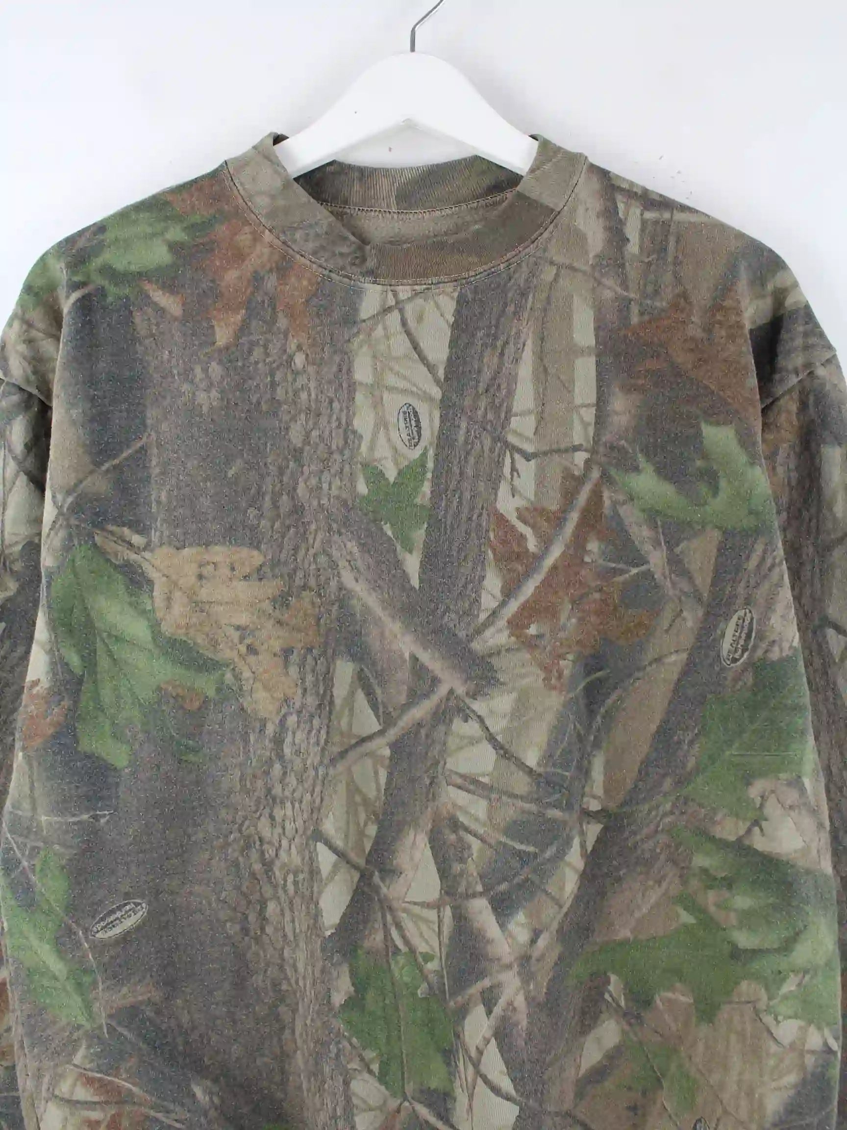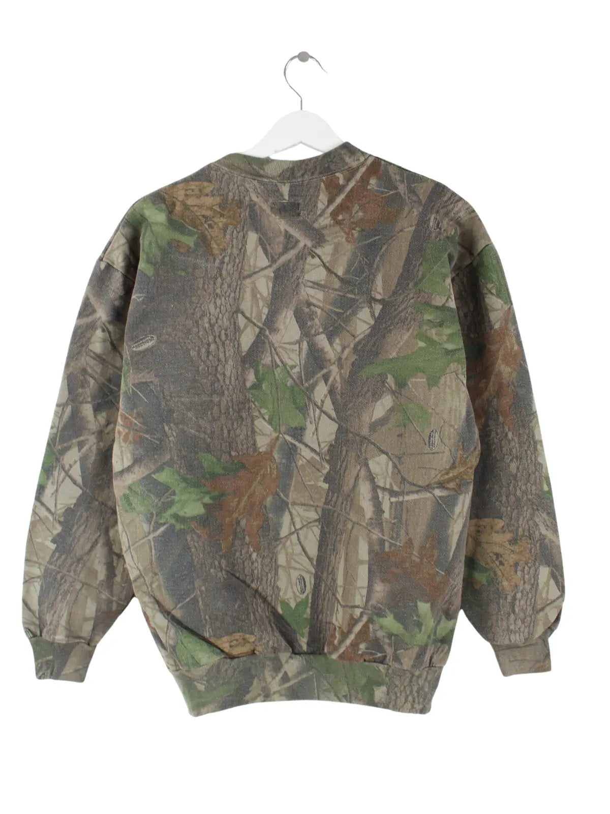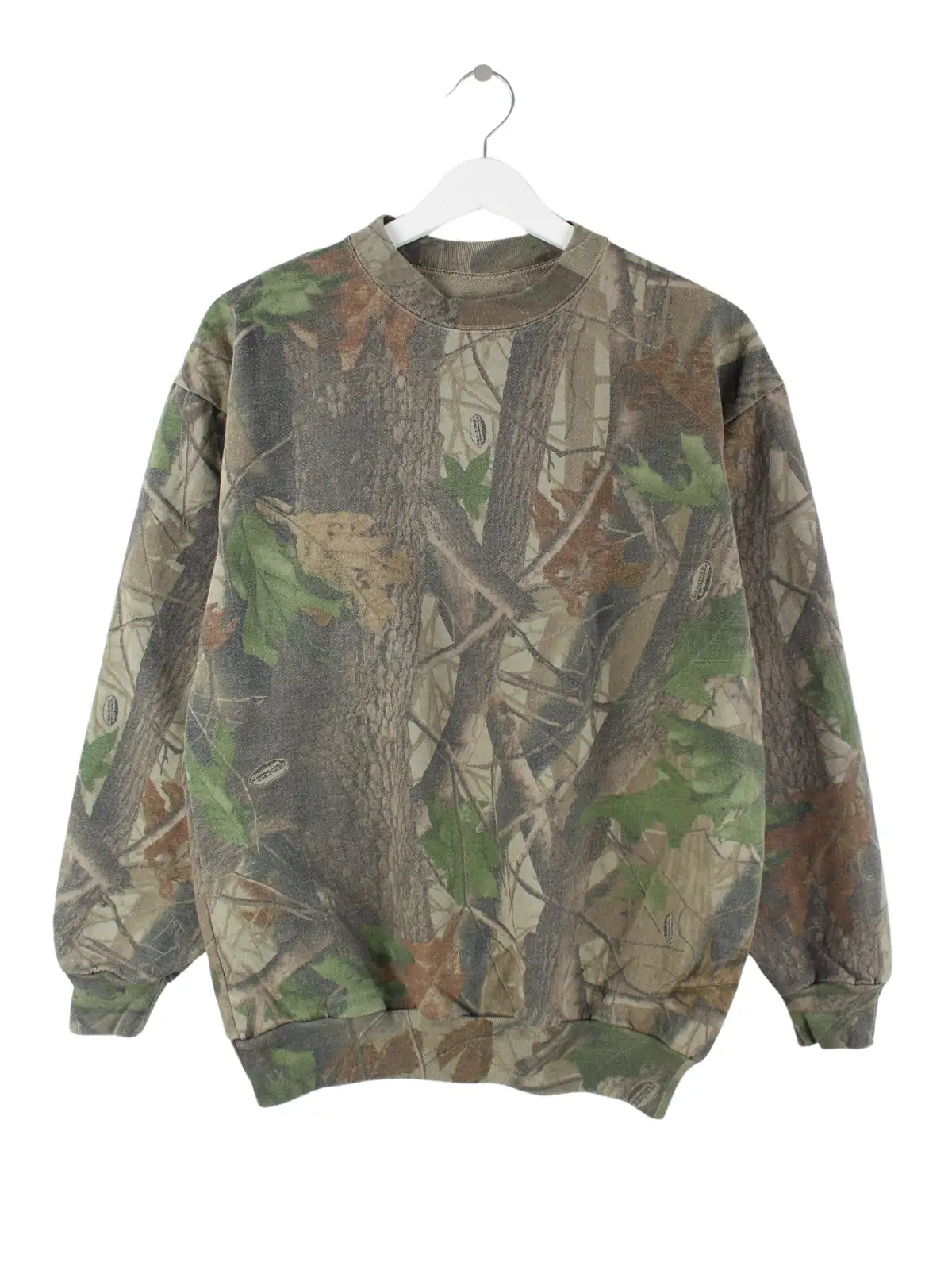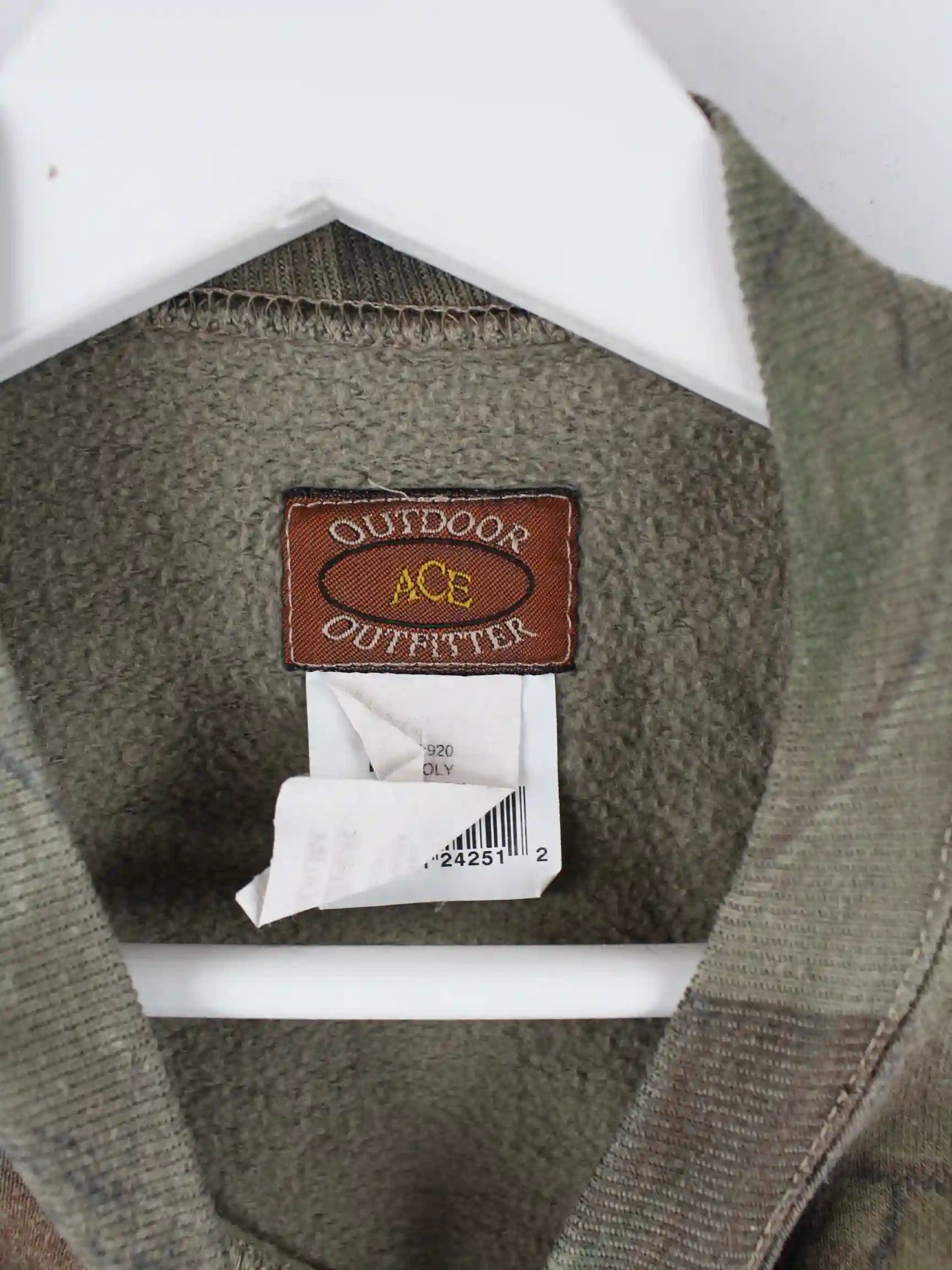 Vintage Sweater in Größe M. Er ist aus einer Baumwollmischung gemacht und in Grün lieferbar.