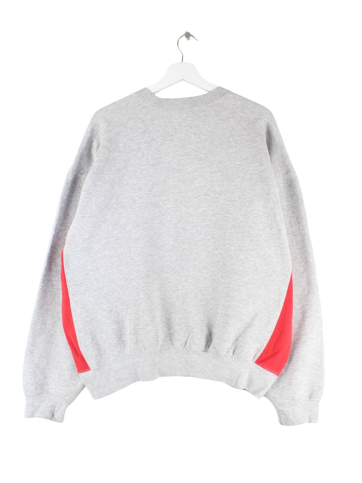 Grauer Vintage Sweater in Größe XL. Er ist aus einer Baumwollmischung und in gutem Zustand vorrätig. Mit schönem Rebs Print.
