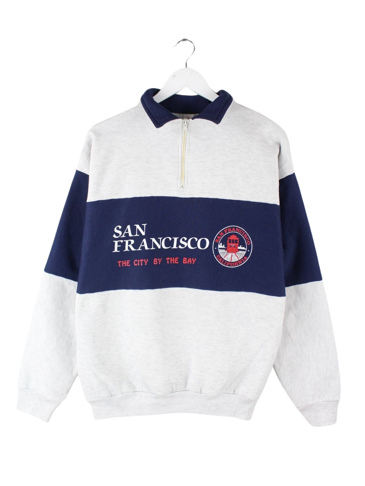 Vintage 00s San Francisco Print Haf Zip Sweater Grau M