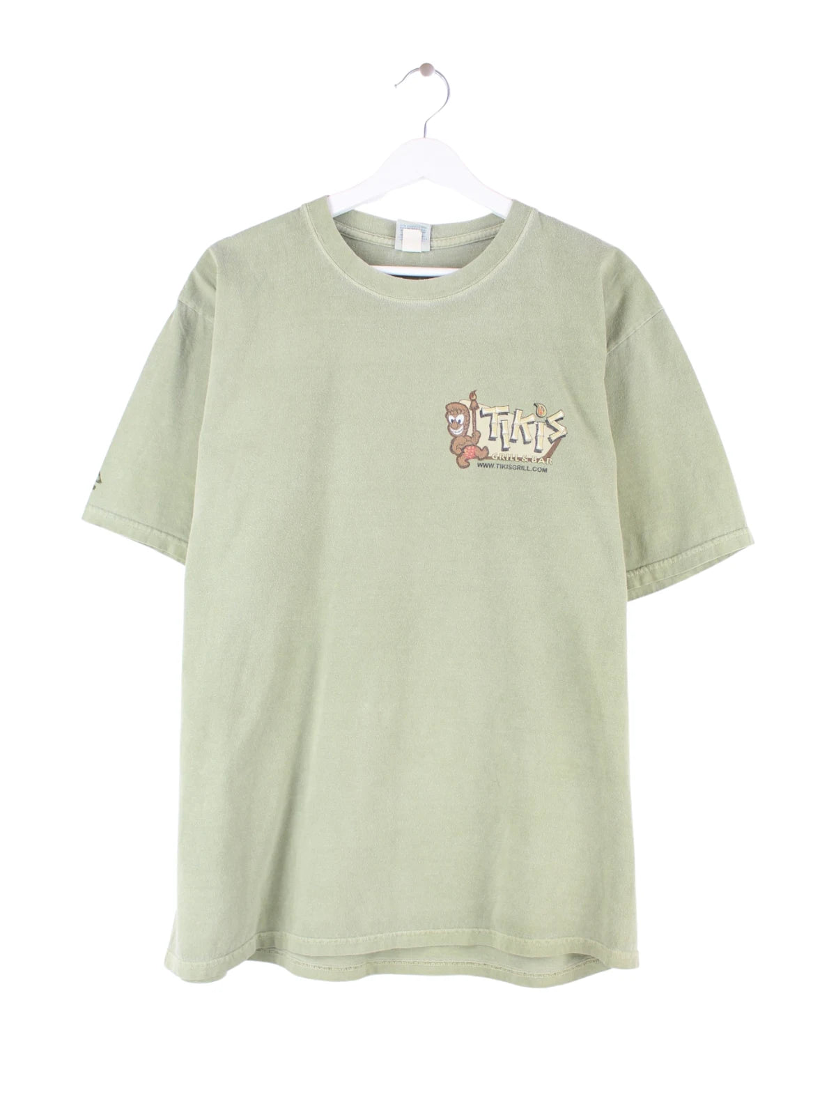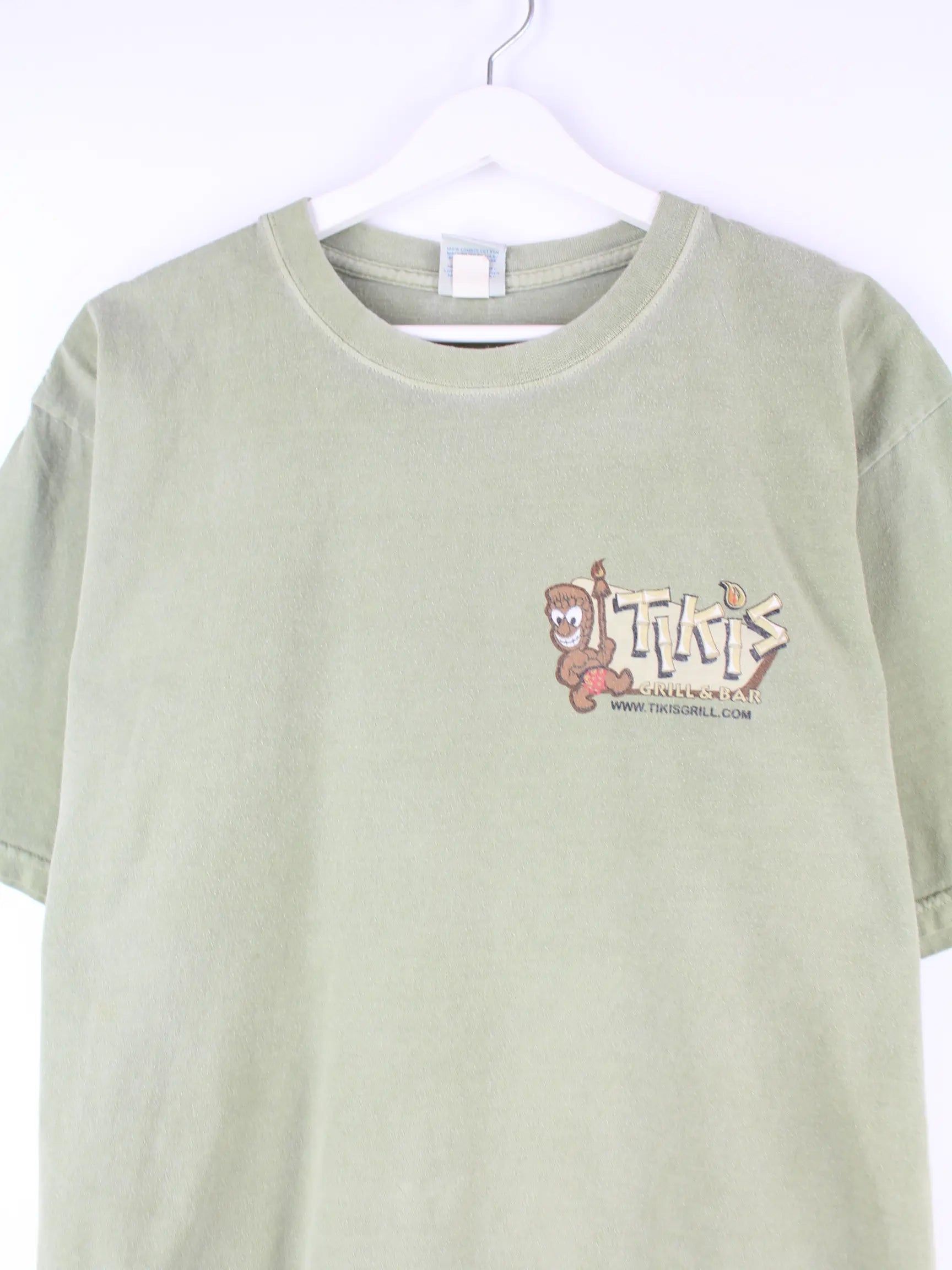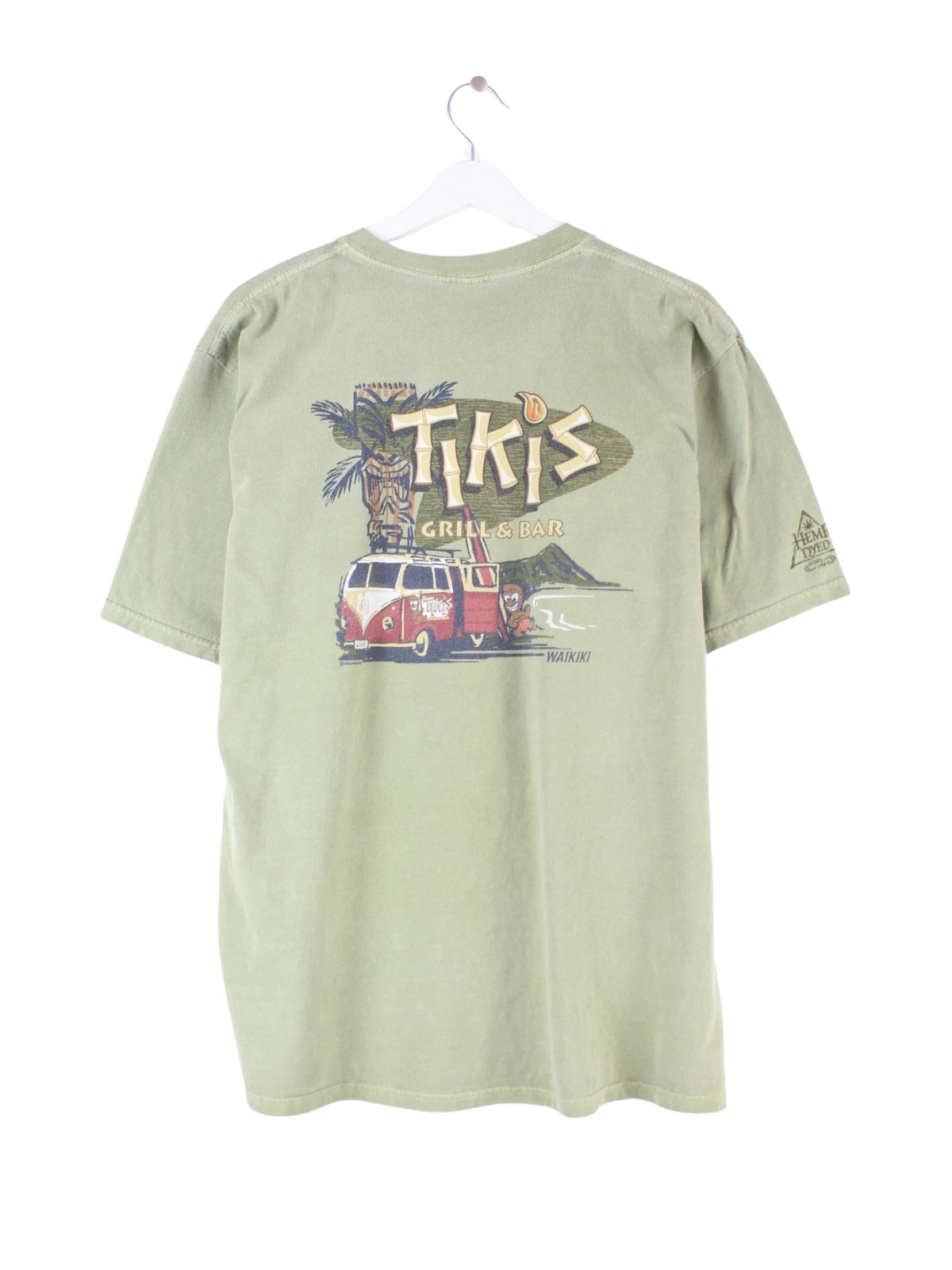 Vintage T-Shirt in Größe L. Es ist aus Baumwolle produziert und in Grün zu bekommen. Mit seltenem Tikis Print.