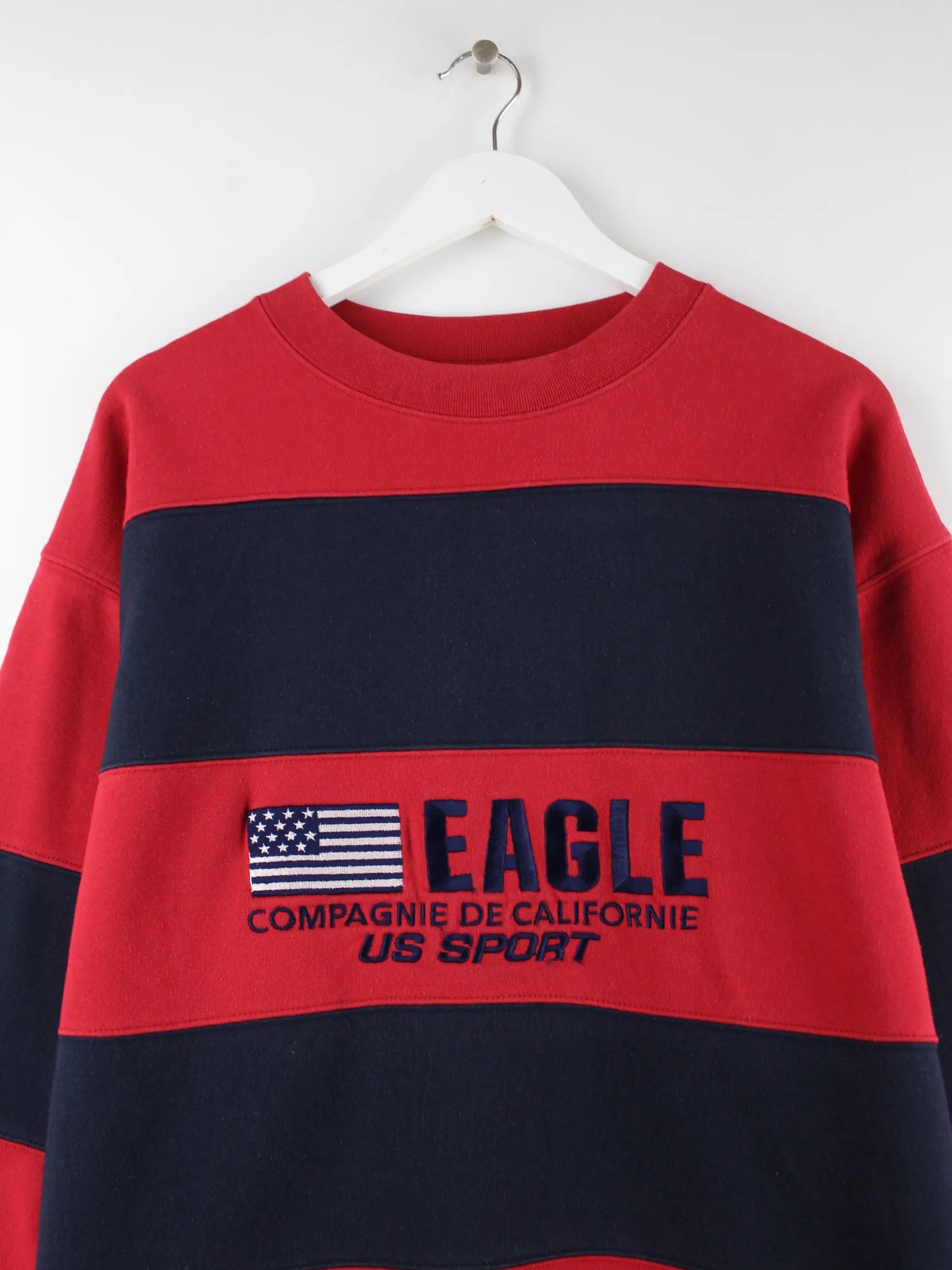 Vintage Sweater in Größe XL. Er ist aus einer Baumwollmischung gefertigt und in Rot im Bestand.