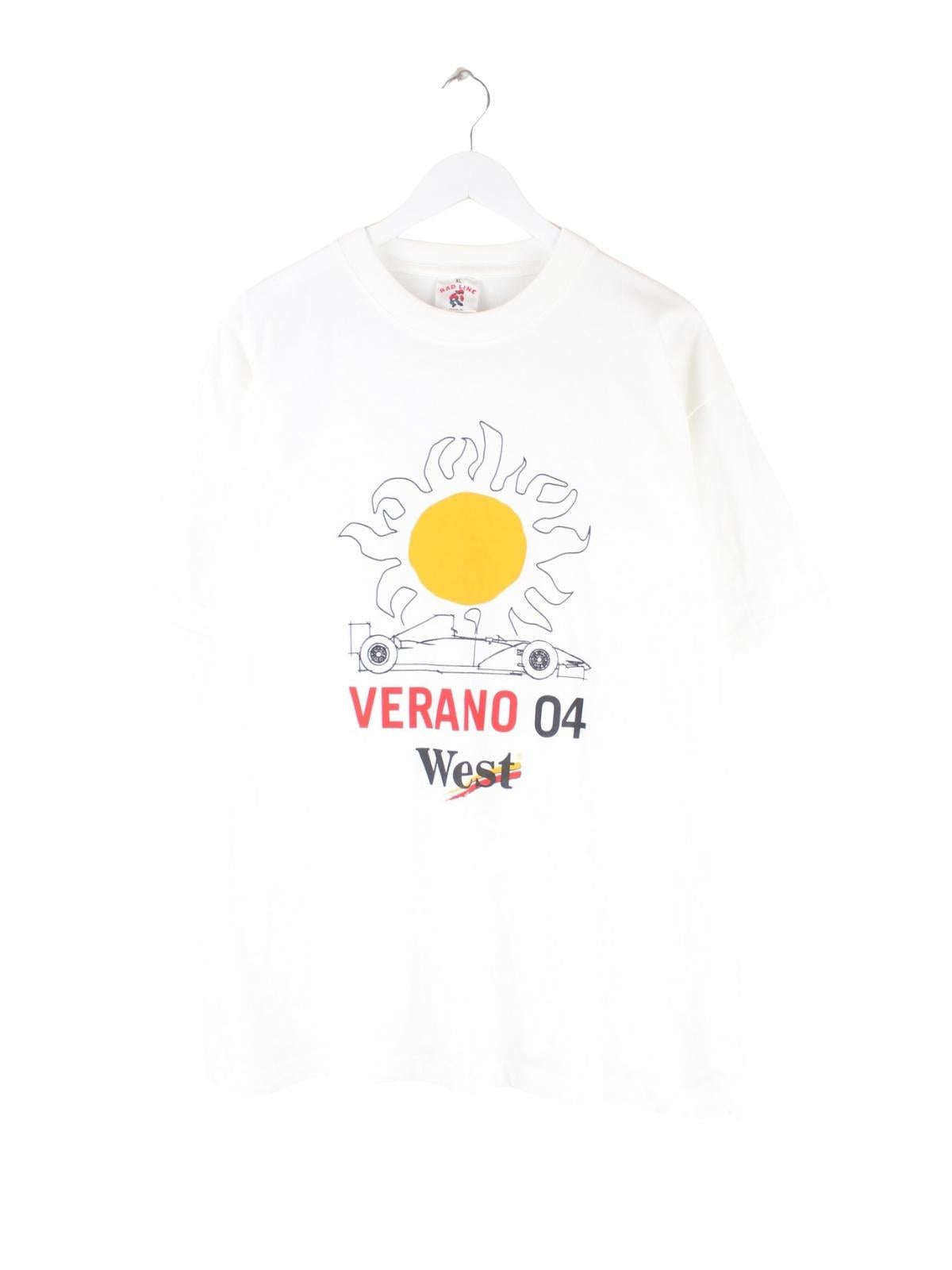 Vintage 00s Verano 04 Racing West Print T-Shirt Weiß XL