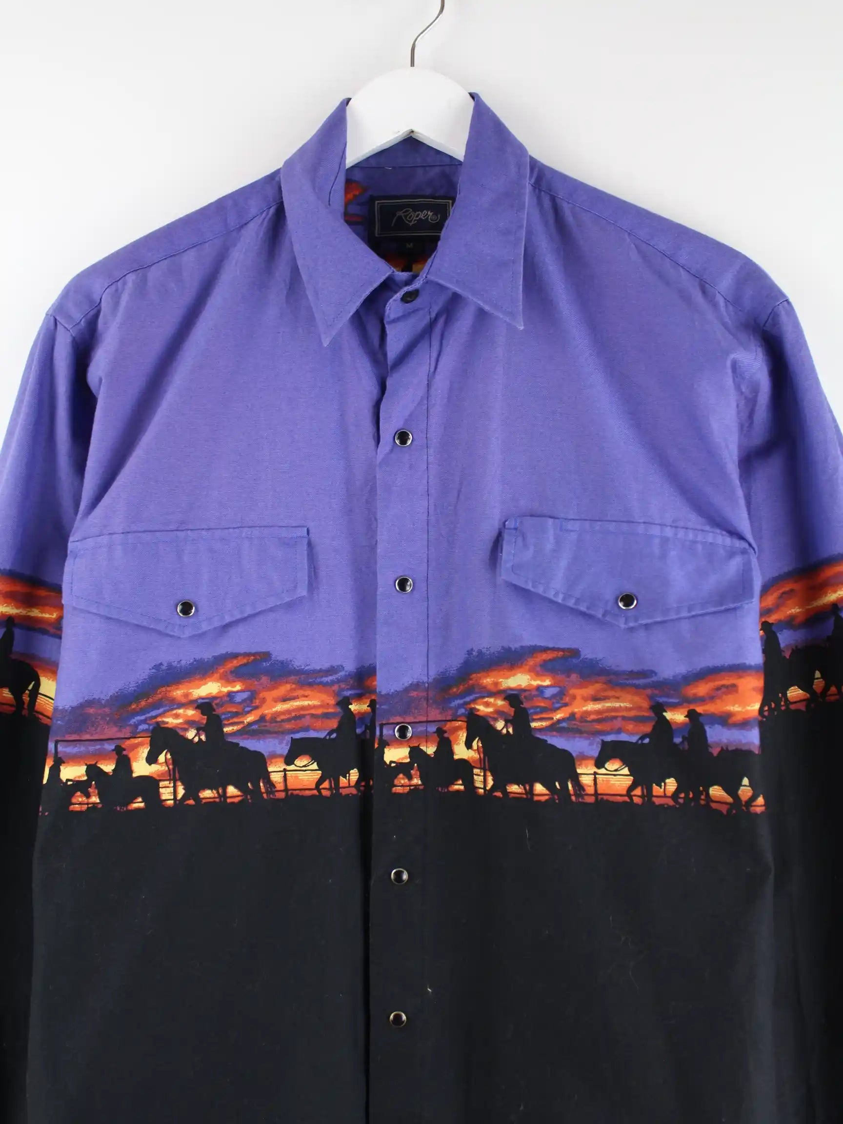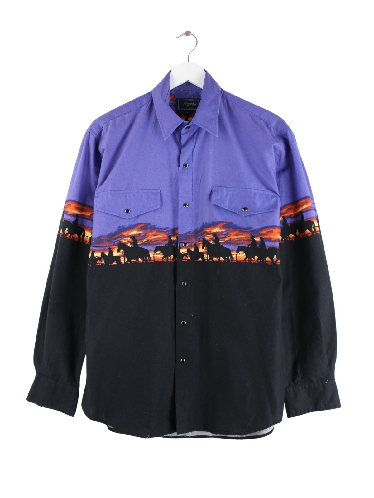 Vintage Western Freizeit Hemd in Größe M. Es ist aus einer Baumwollmischung und in bunten Farben lieferbar.