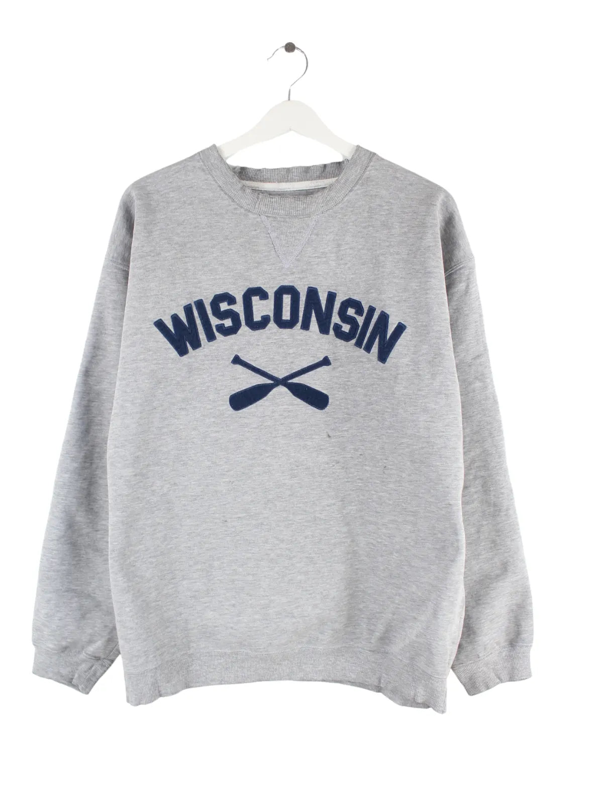 Vintage 00s Wisconsin Embroidered Sweater Grau L