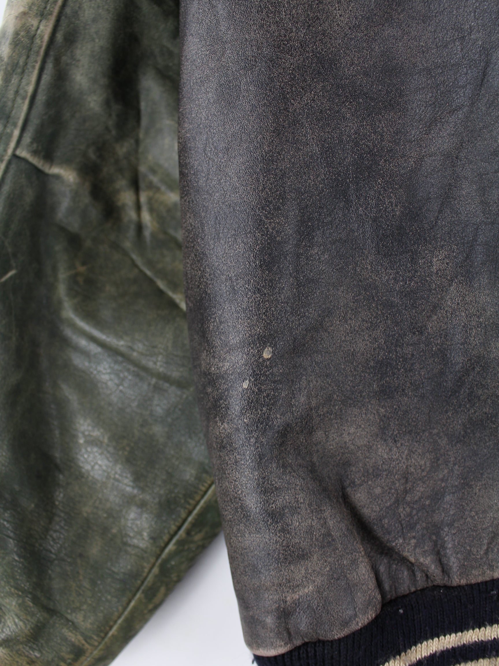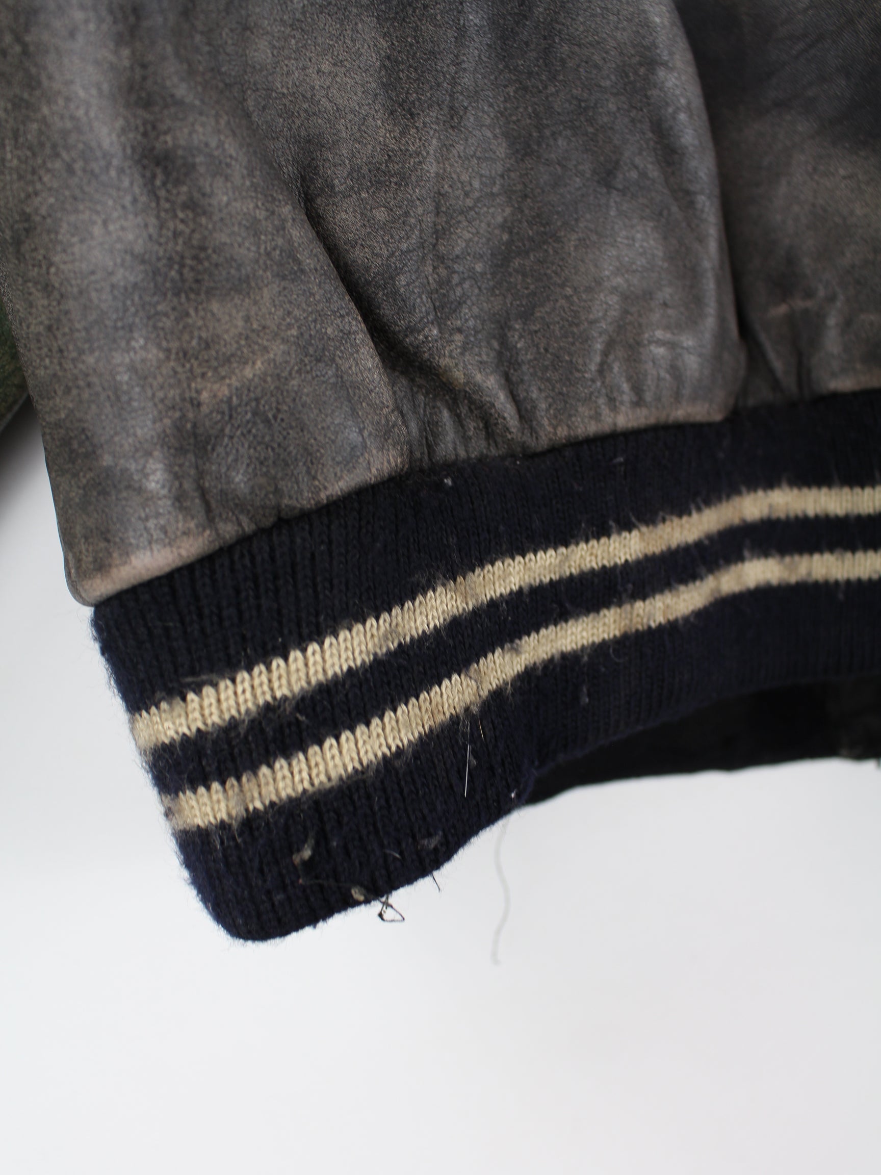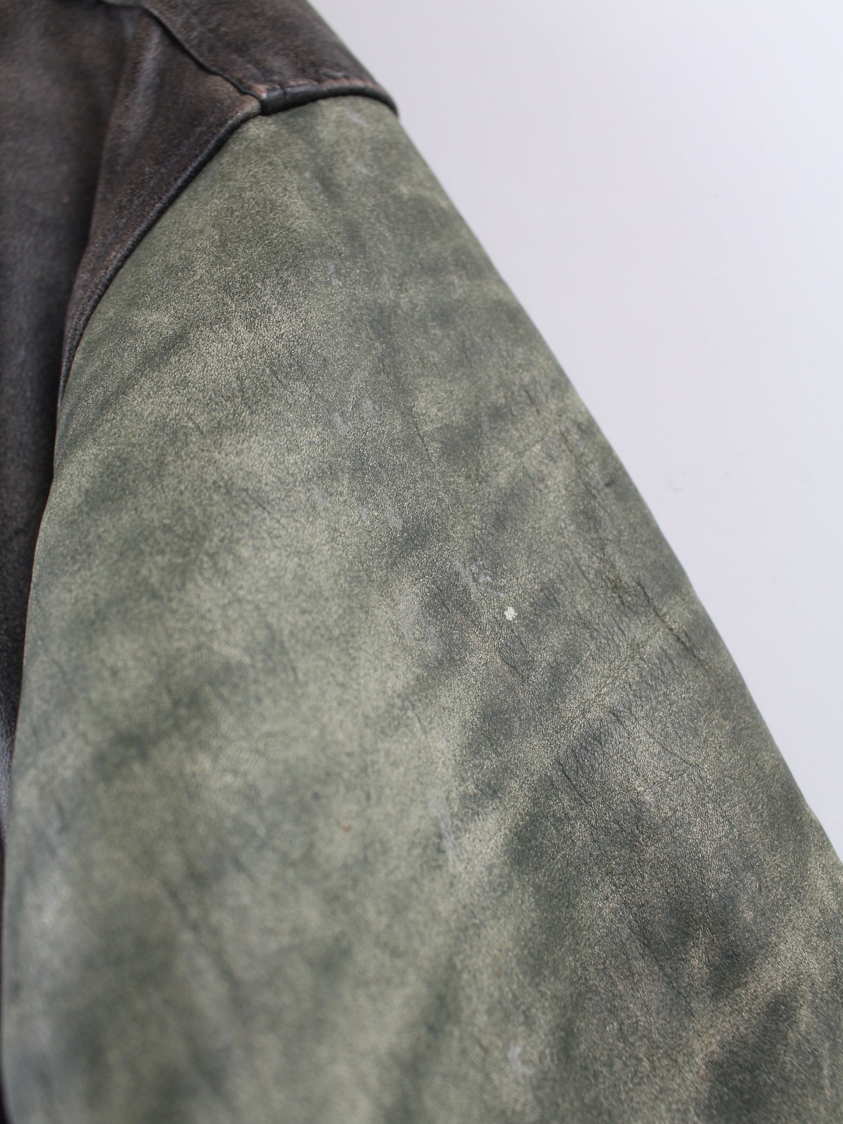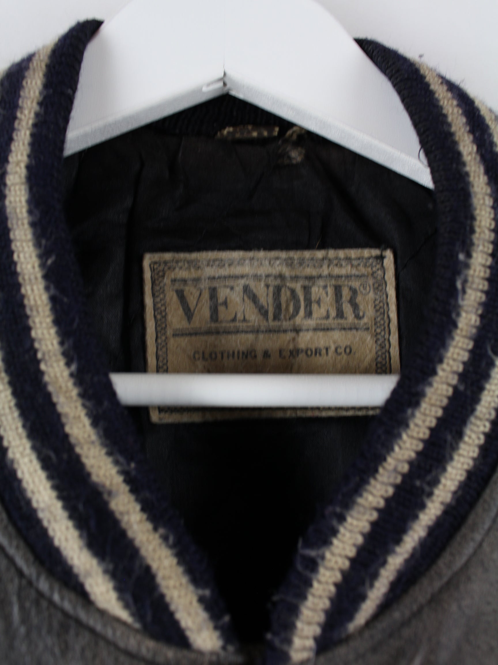Grey vintage jacket with embroidered logo in size L. It is made of leather and is available in good condition.