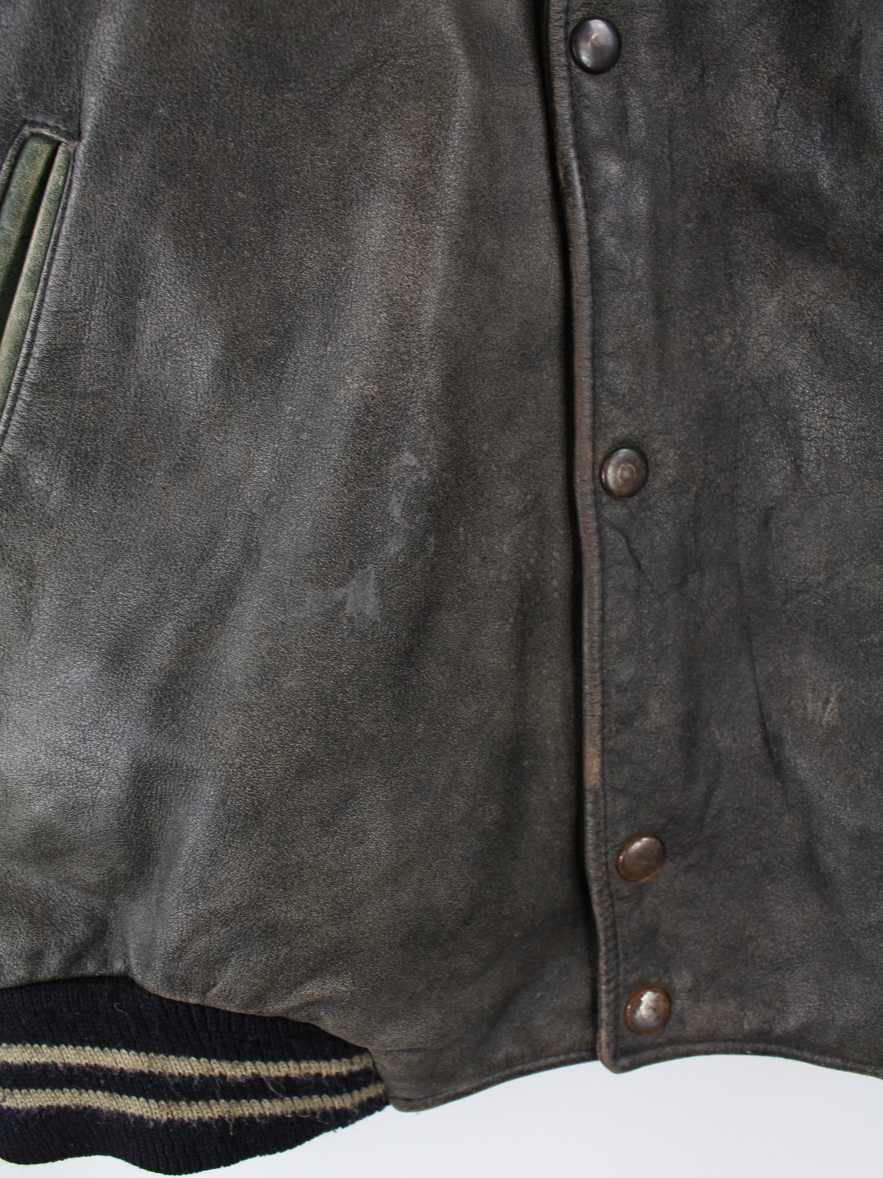 Vintage 1992 Embroidered College Leather Jacket Gray L