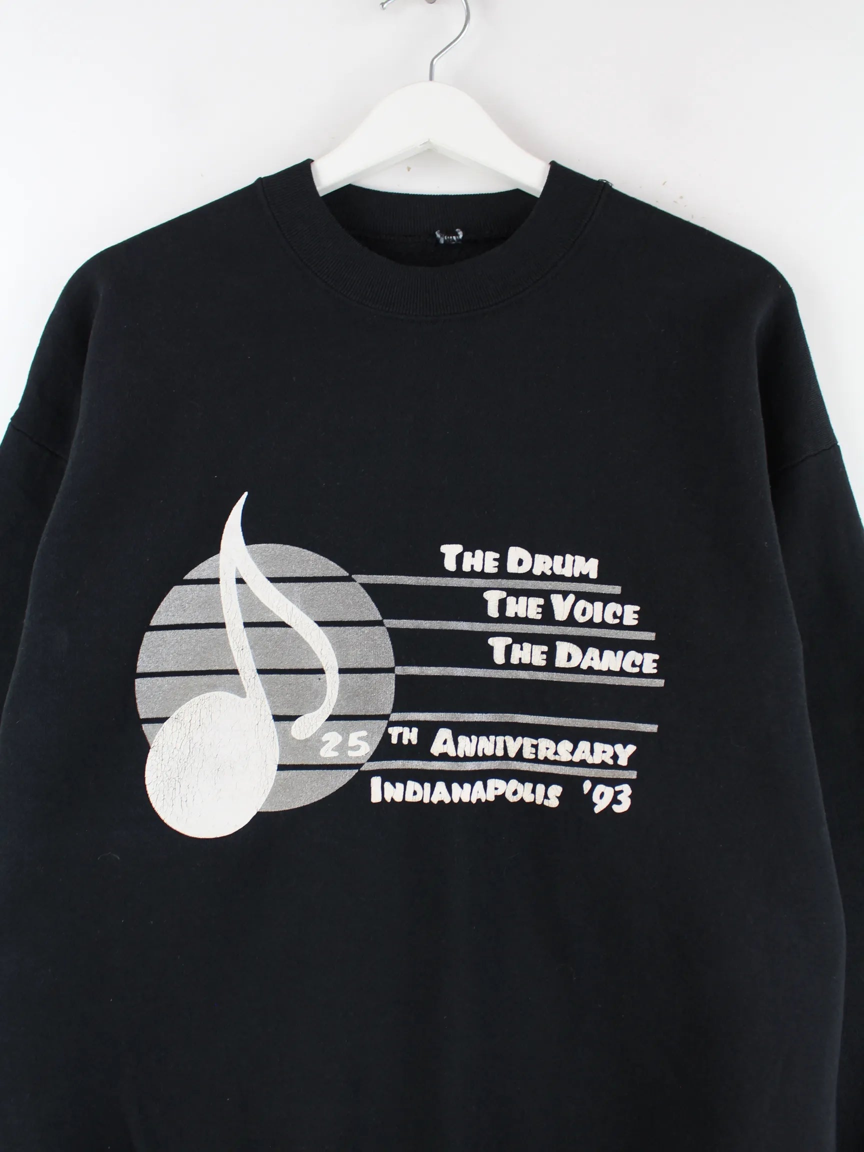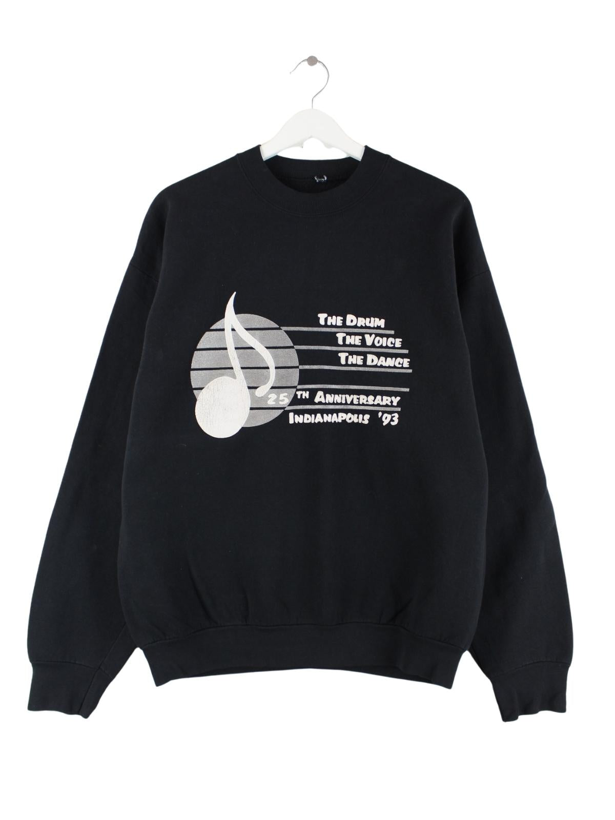 Schwarzer Vintage Sweater in Größe M. Er ist aus einer Baumwollmischung hergestellt und in sehr gutem Zustand auf Lager. Mit chiquem 1993 Print.