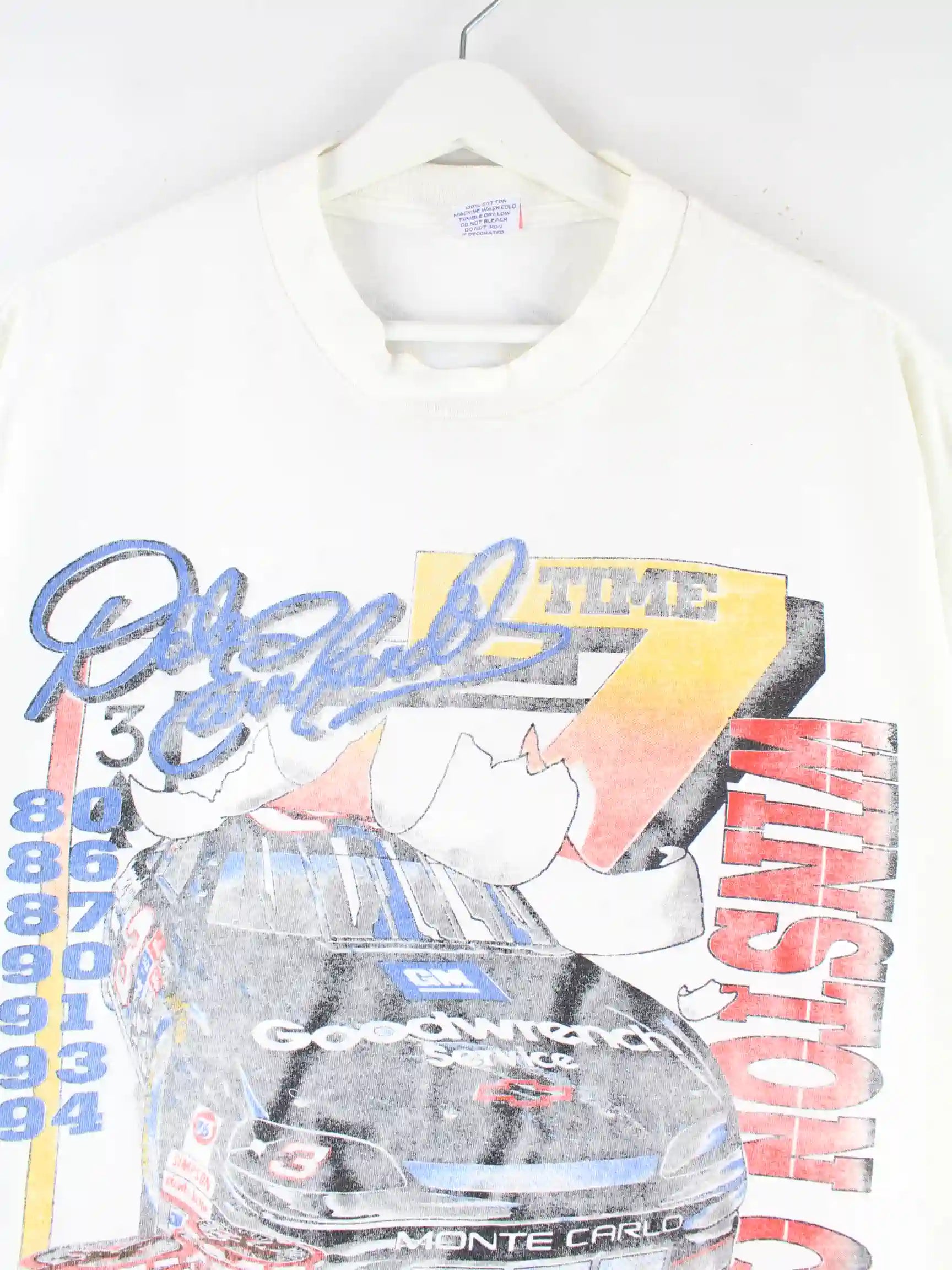 Vintage T-Shirt in Größe M. Es ist aus Baumwolle gefertigt und in Weiß vorrätig. Mit schönem Nascar Print.