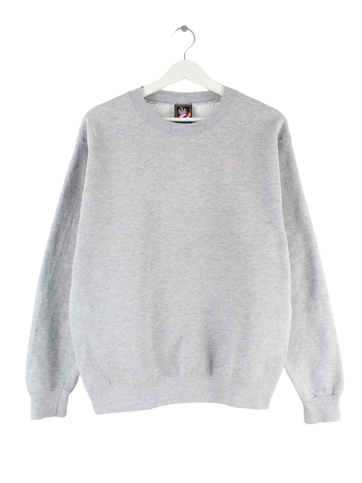 Grauer Vintage Sweater in Größe XL. Er ist aus einer Baumwollmischung angefertigt und in sehr gutem Zustand bei uns zu bekommen.