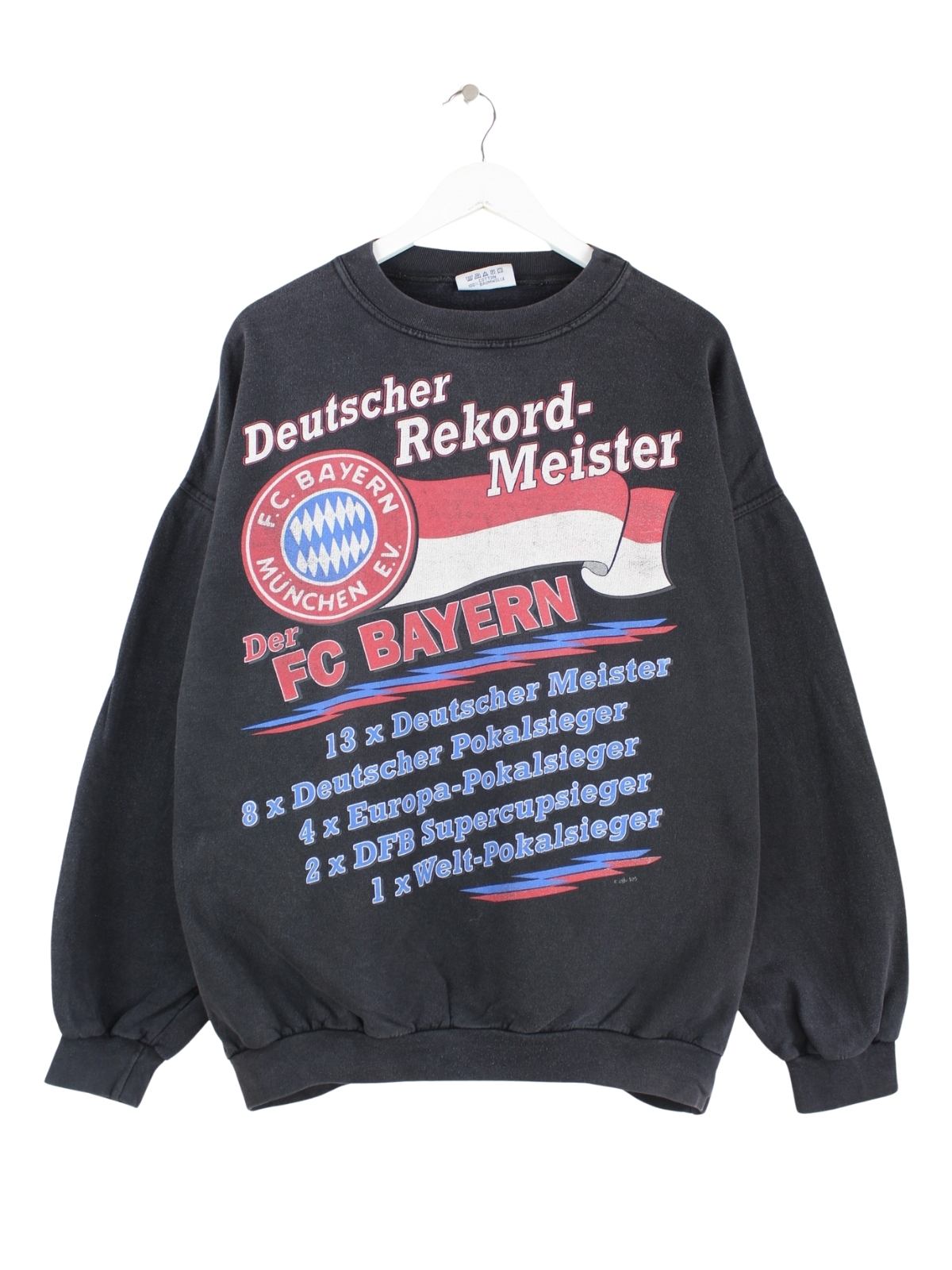 Vintage 1996 FC Bayern Rekordmeister Print Sweater Schwarz L