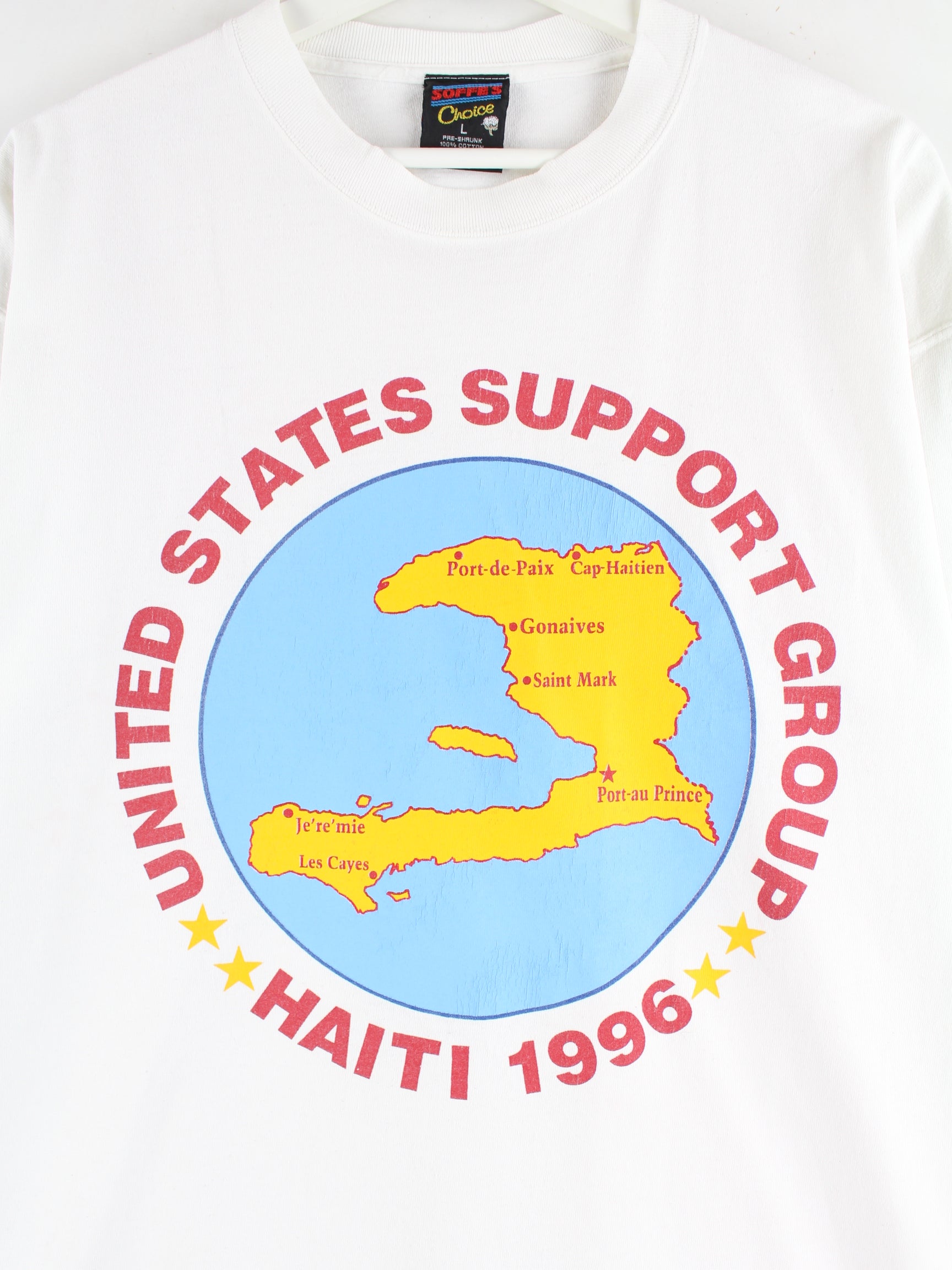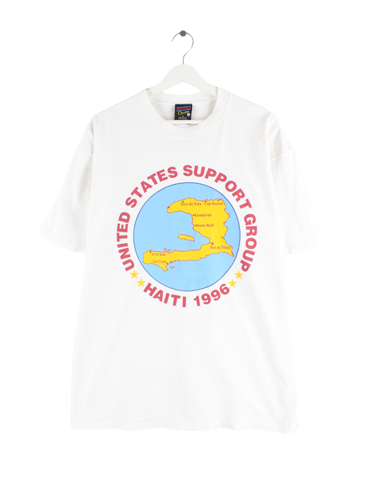 White vintage T-shirt in size L. It is made from a cotton blend and is in very good condition. With a great Haiti print.