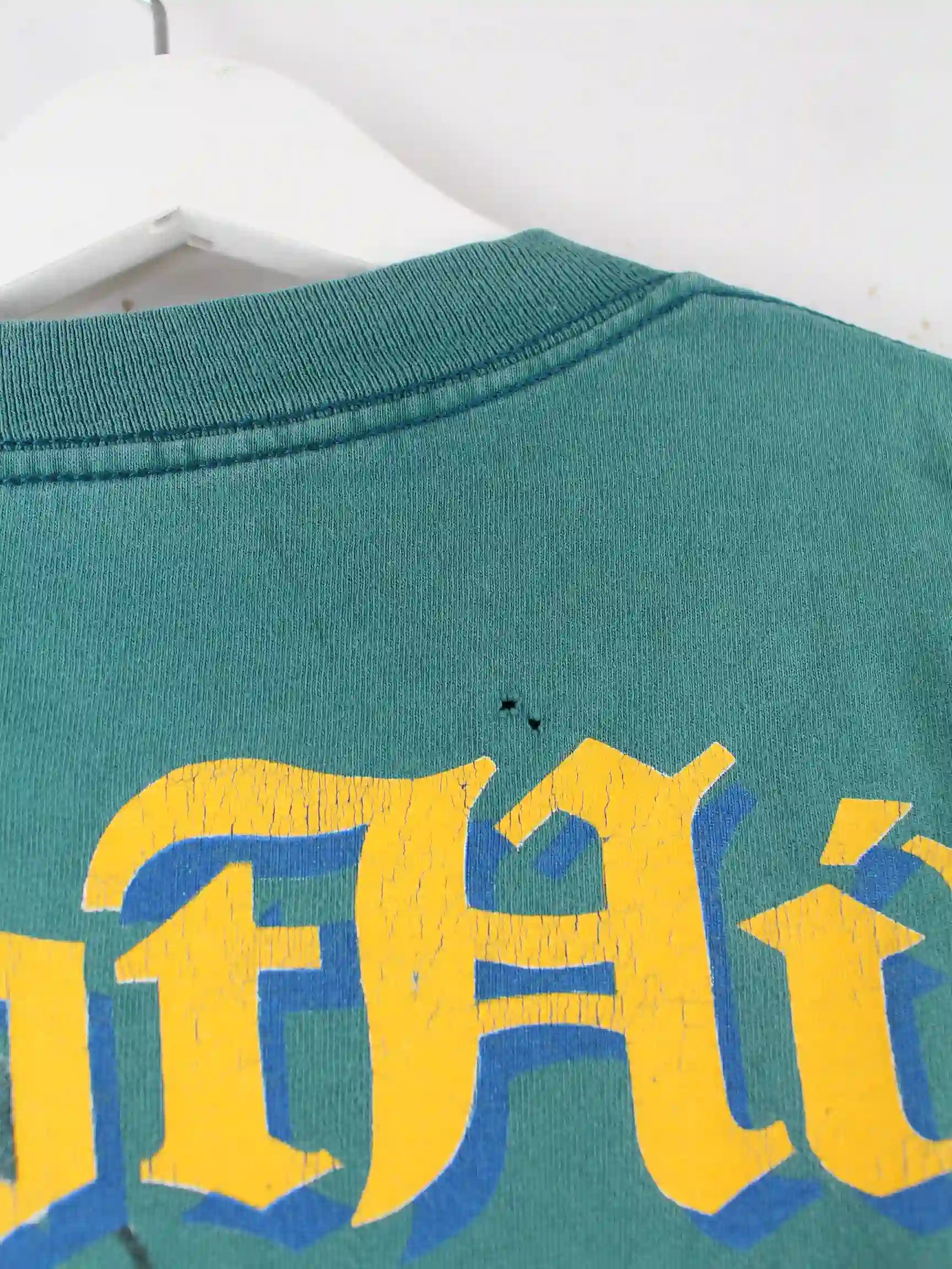 Vintage T-Shirt in Größe XL. Es ist aus einer Baumwollmischung gemacht und in Grün zu haben. Mit tollem Hill Print.