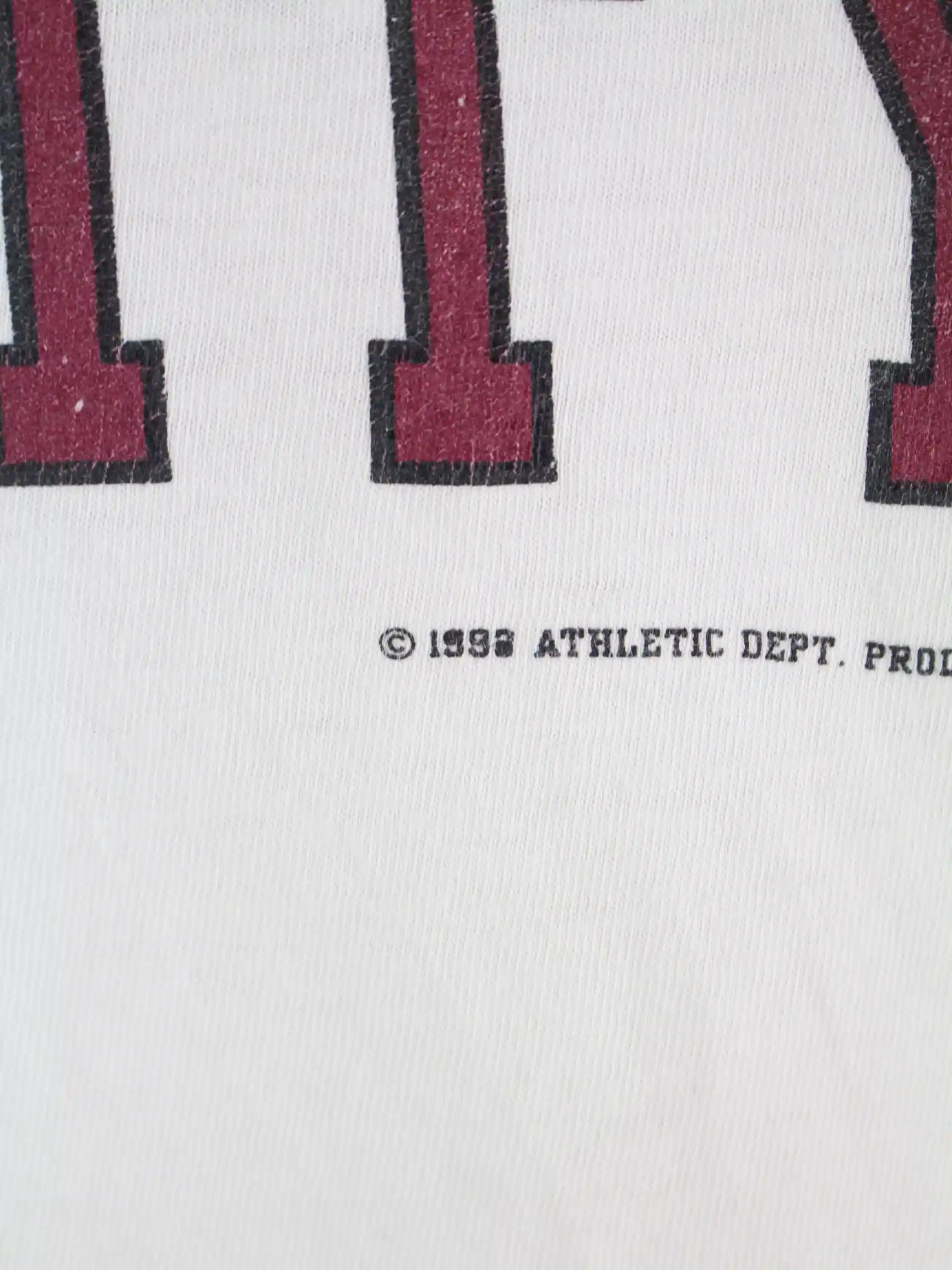 Vintage T-Shirt in Größe XL. Es ist aus Baumwolle hergestellt und in Weiß zu bekommen. Mit schönem University Print.