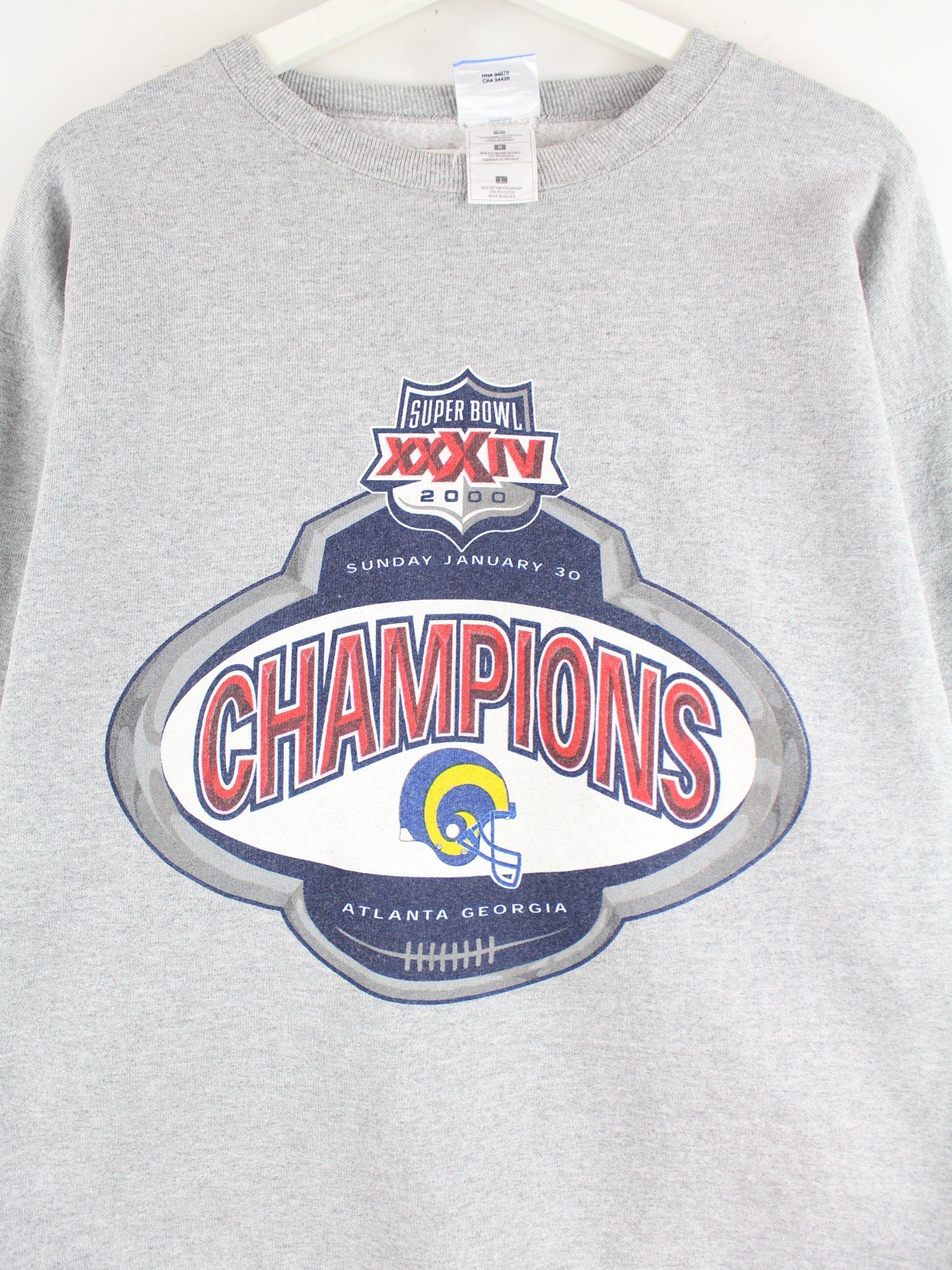 Vintage 2000 Super Bowl Georgia Print Sweater Gray L