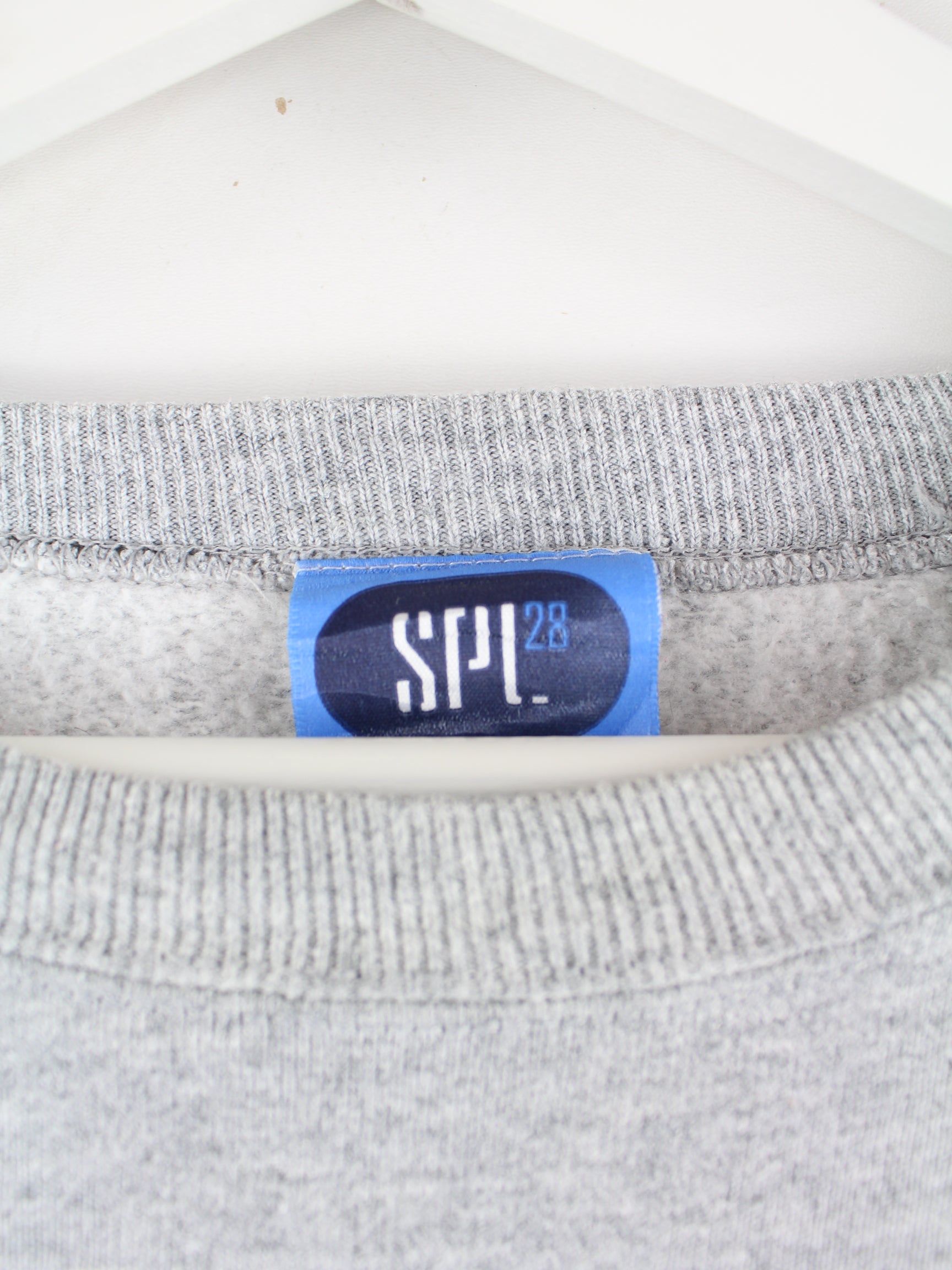 Grey vintage sweater in size L. It is made from a cotton blend and is available from us in very good condition. With a rare Georgia print.