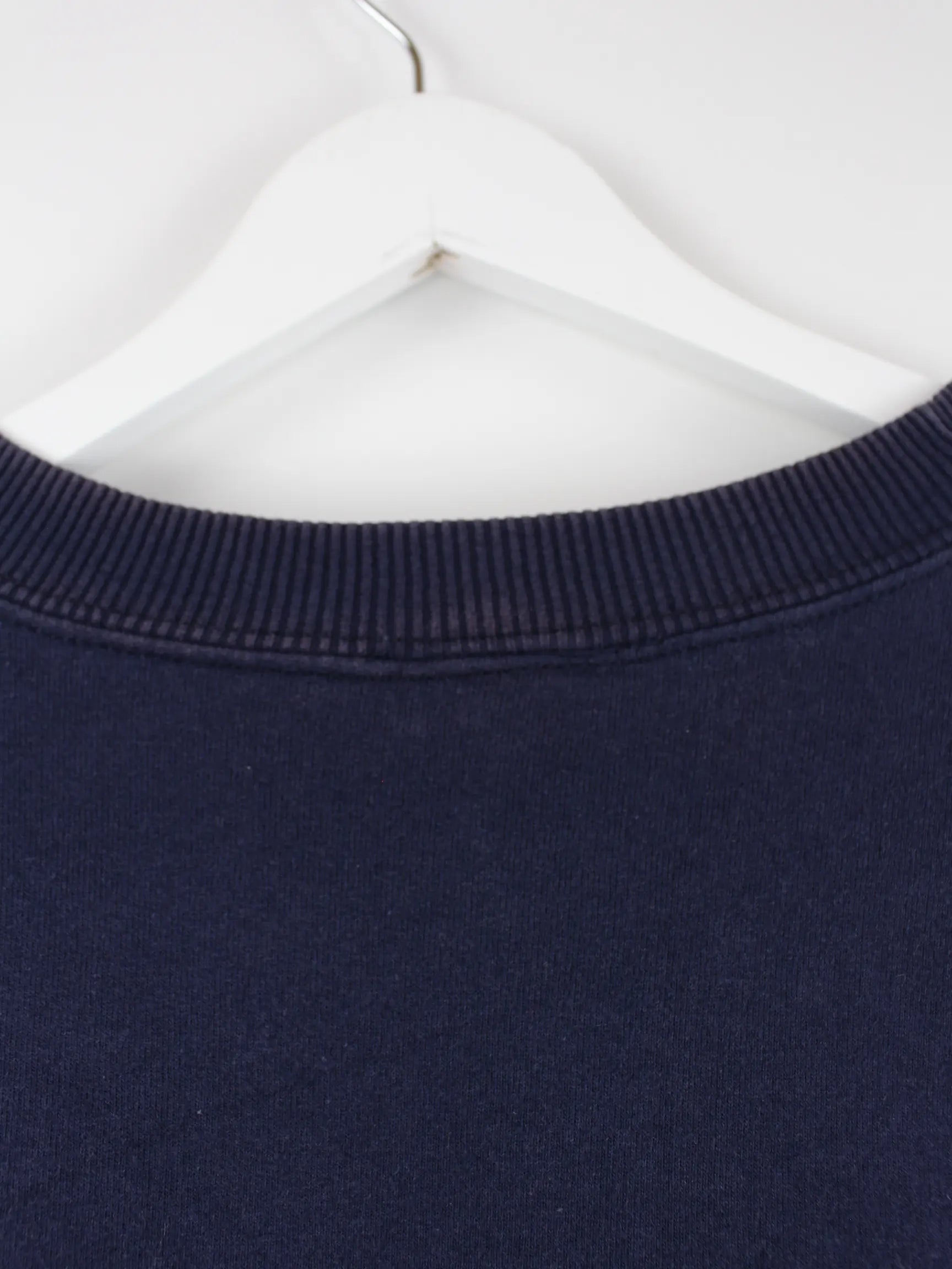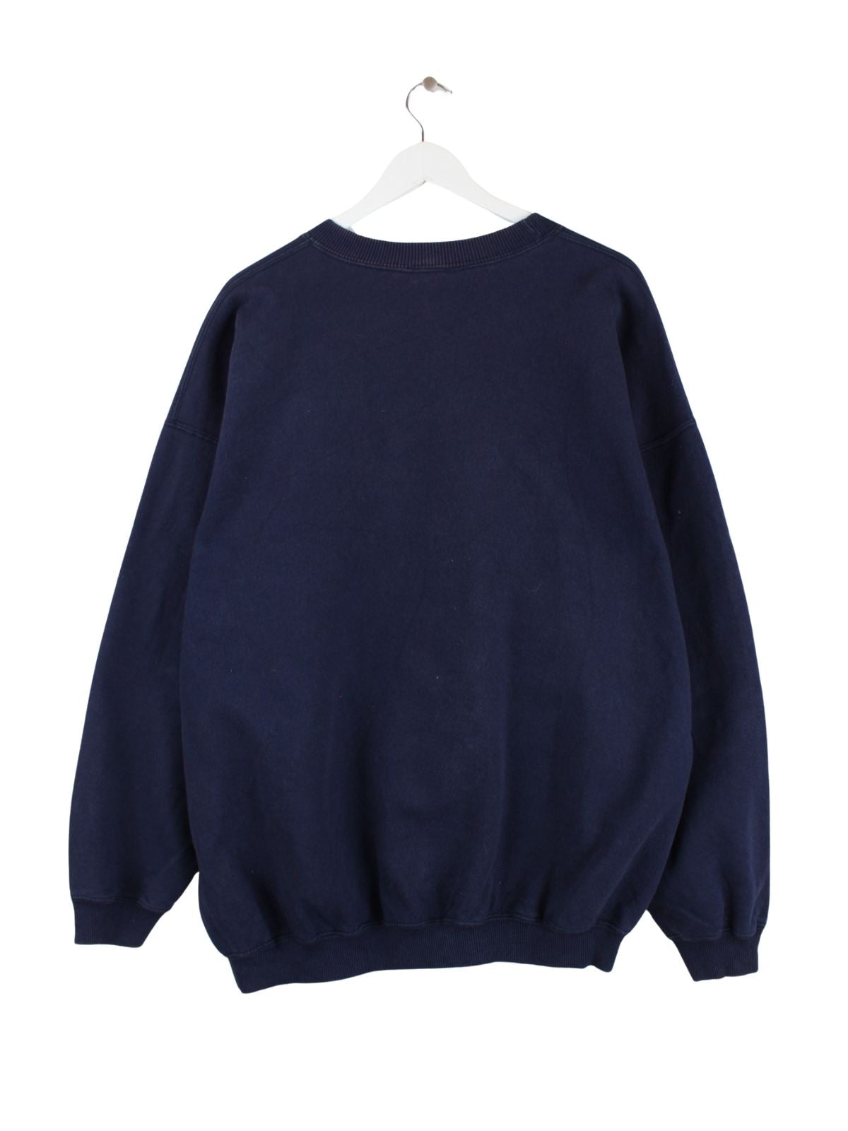 Vintage Sweater in Größe XL. Er ist aus einer Baumwollmischung angefertigt und in Blau im Bestand.