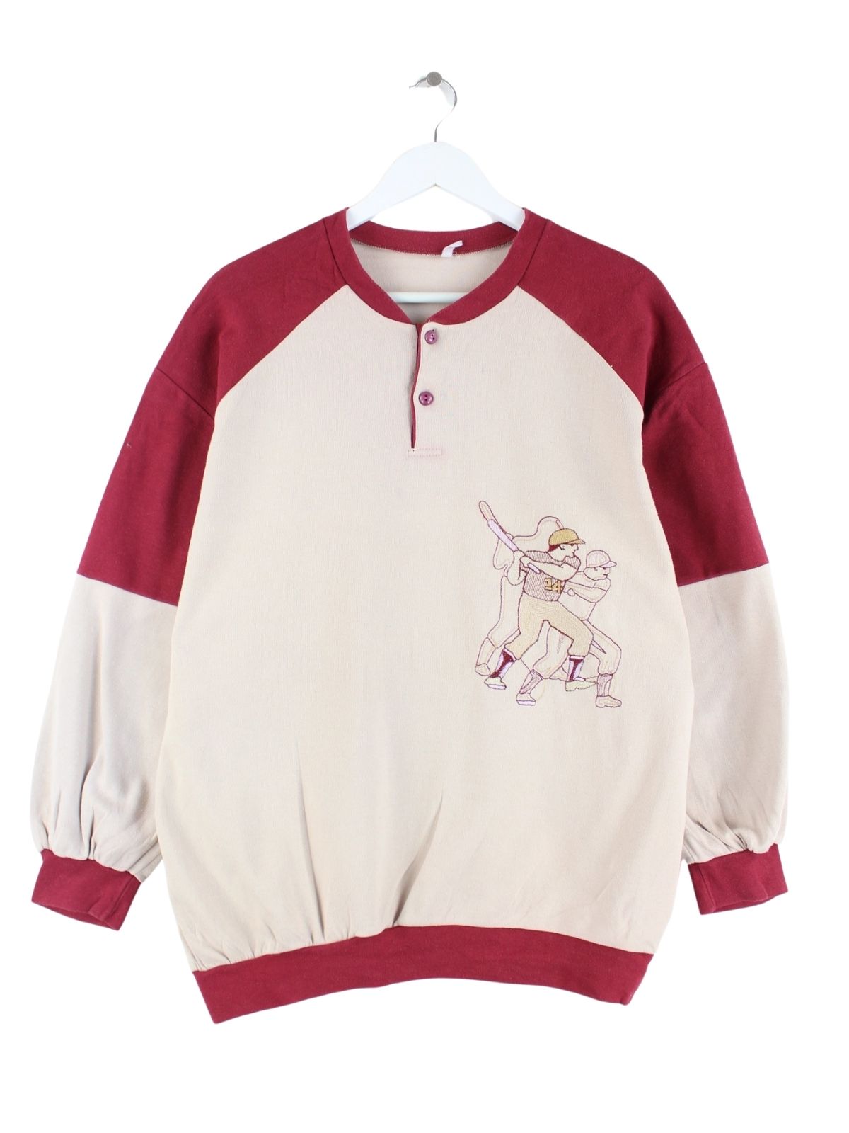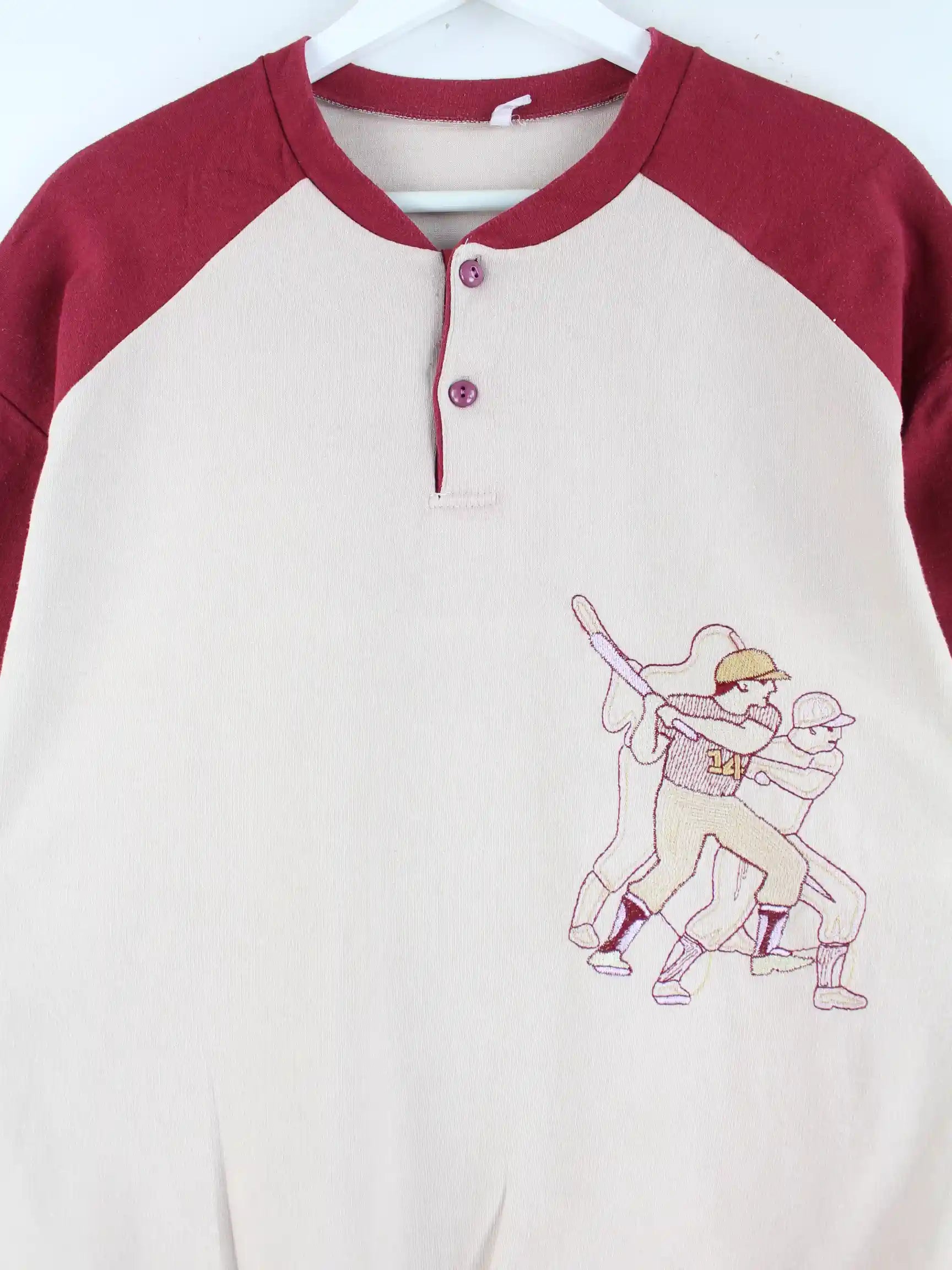 Vintage 80s Baseball Embroidered Sweater Beige S