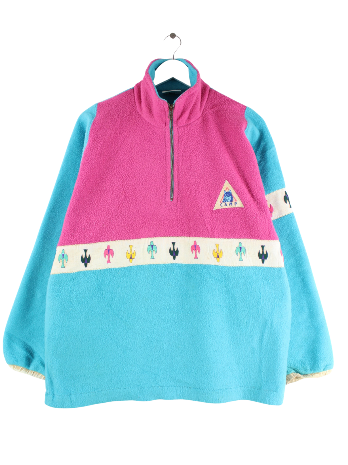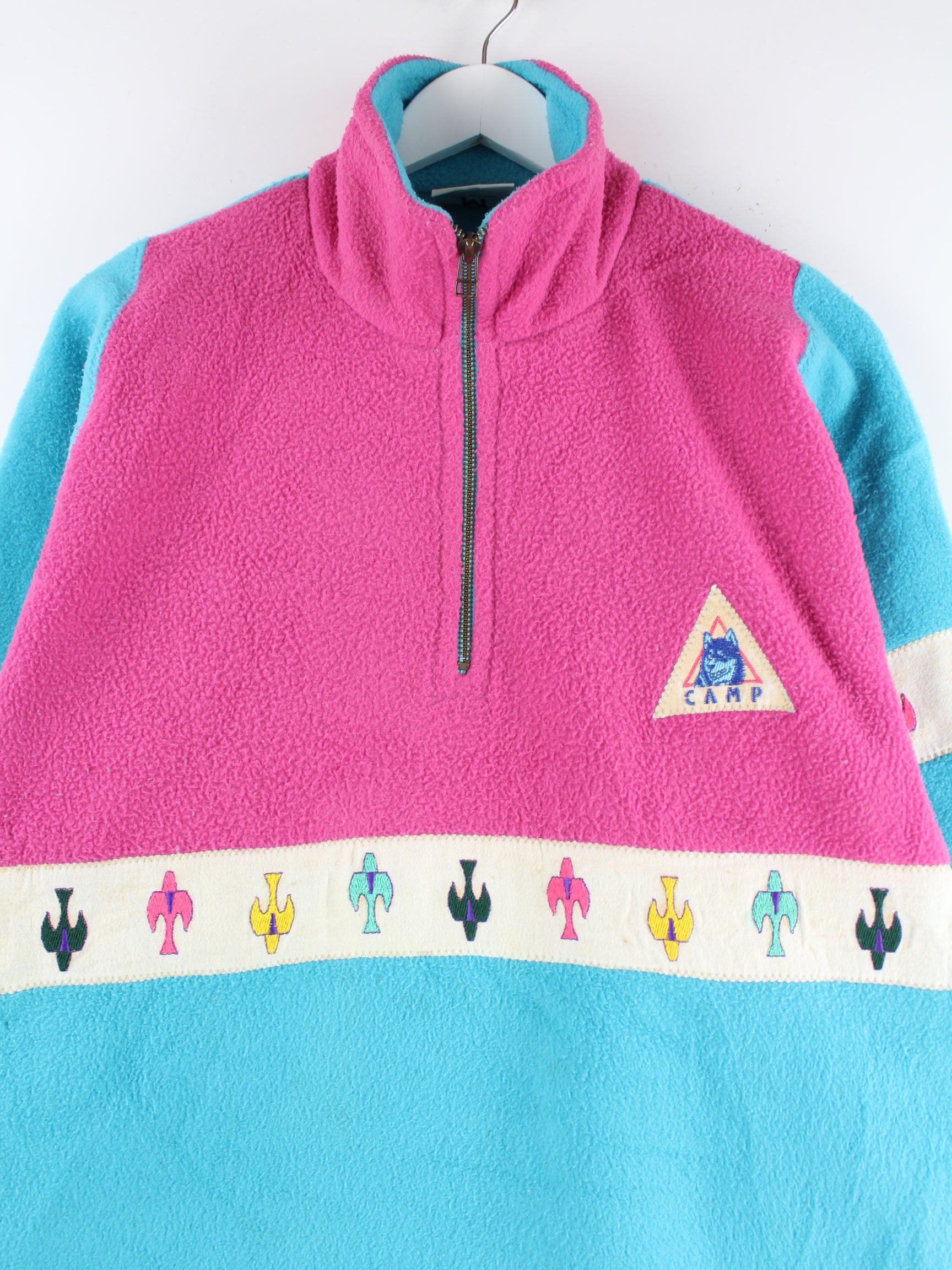 Vintage 80s Camp Embroidered Fleece Half Zip Sweater Mehrfarbig M