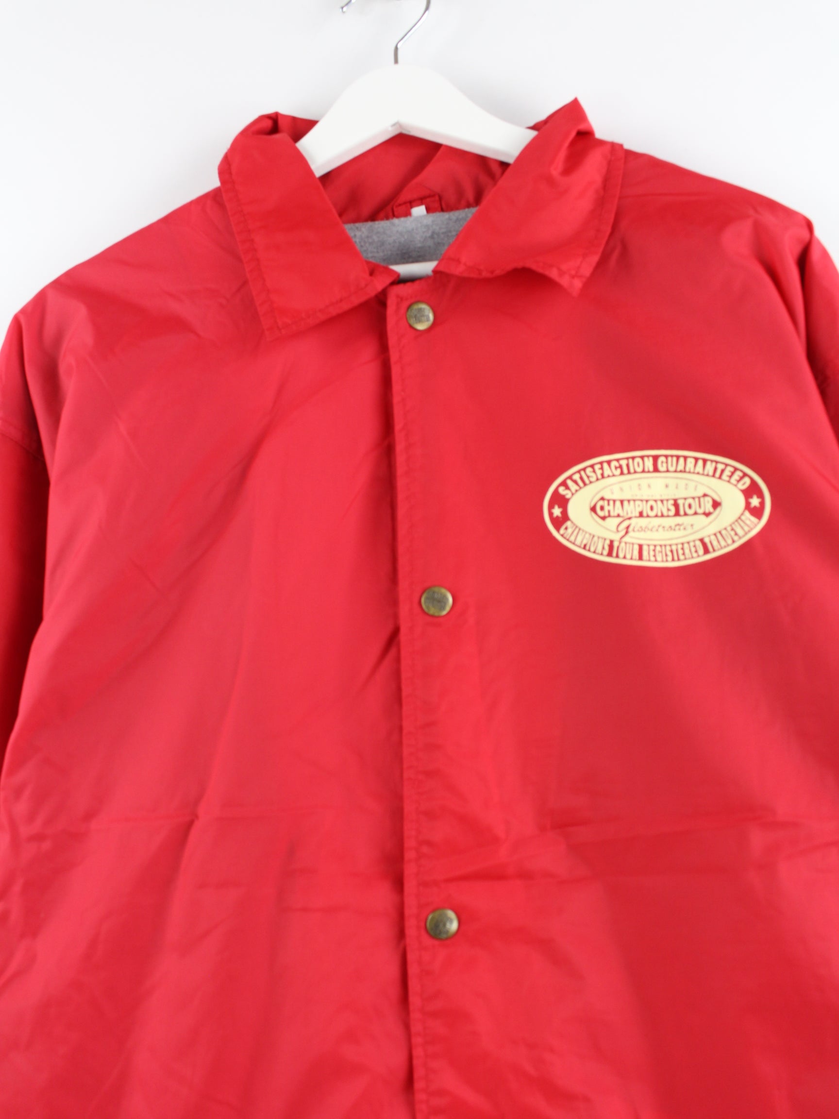 Red vintage light jacket from the 80's in size S. It is made of synthetic material and is in stock in very good condition.