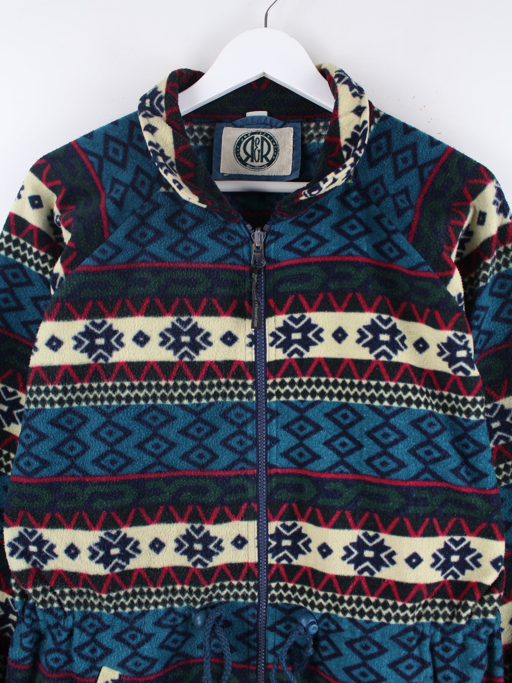 Vintage 80s Crazy Pattern Fleece Jacke Mehrfarbig L
