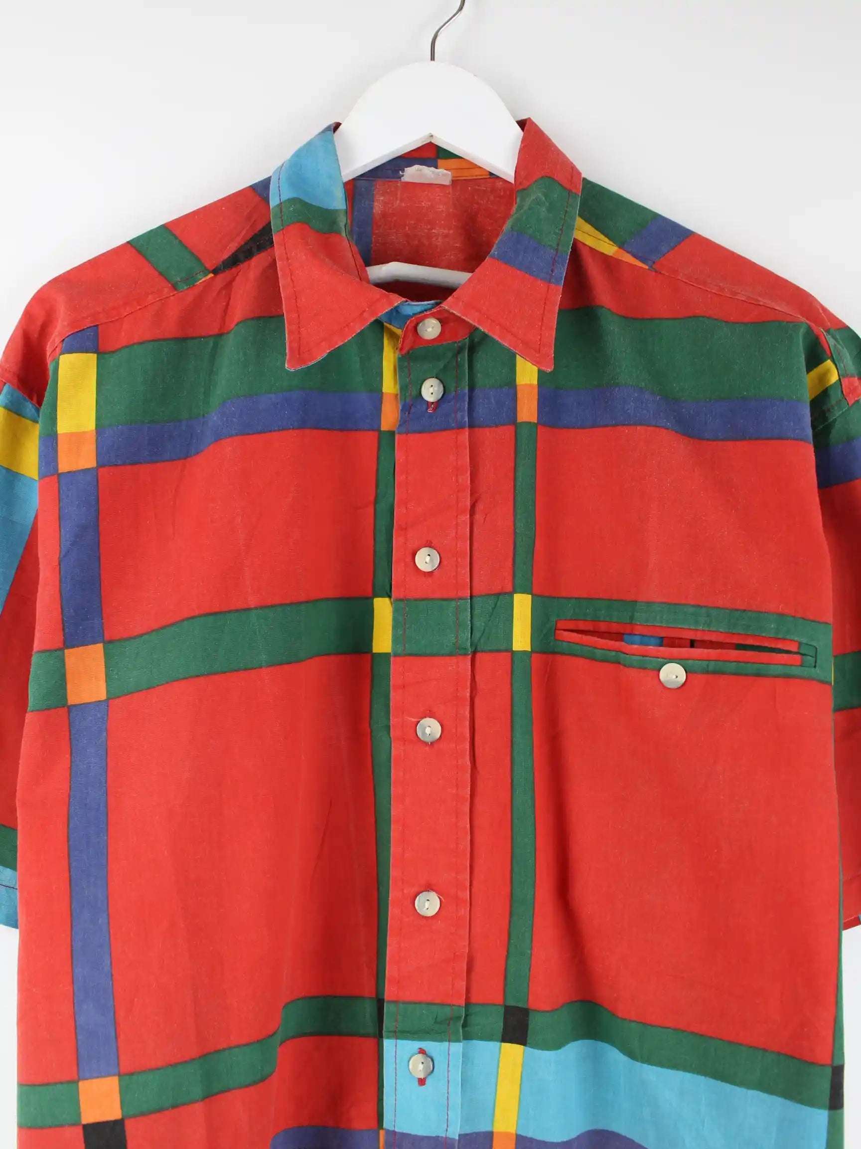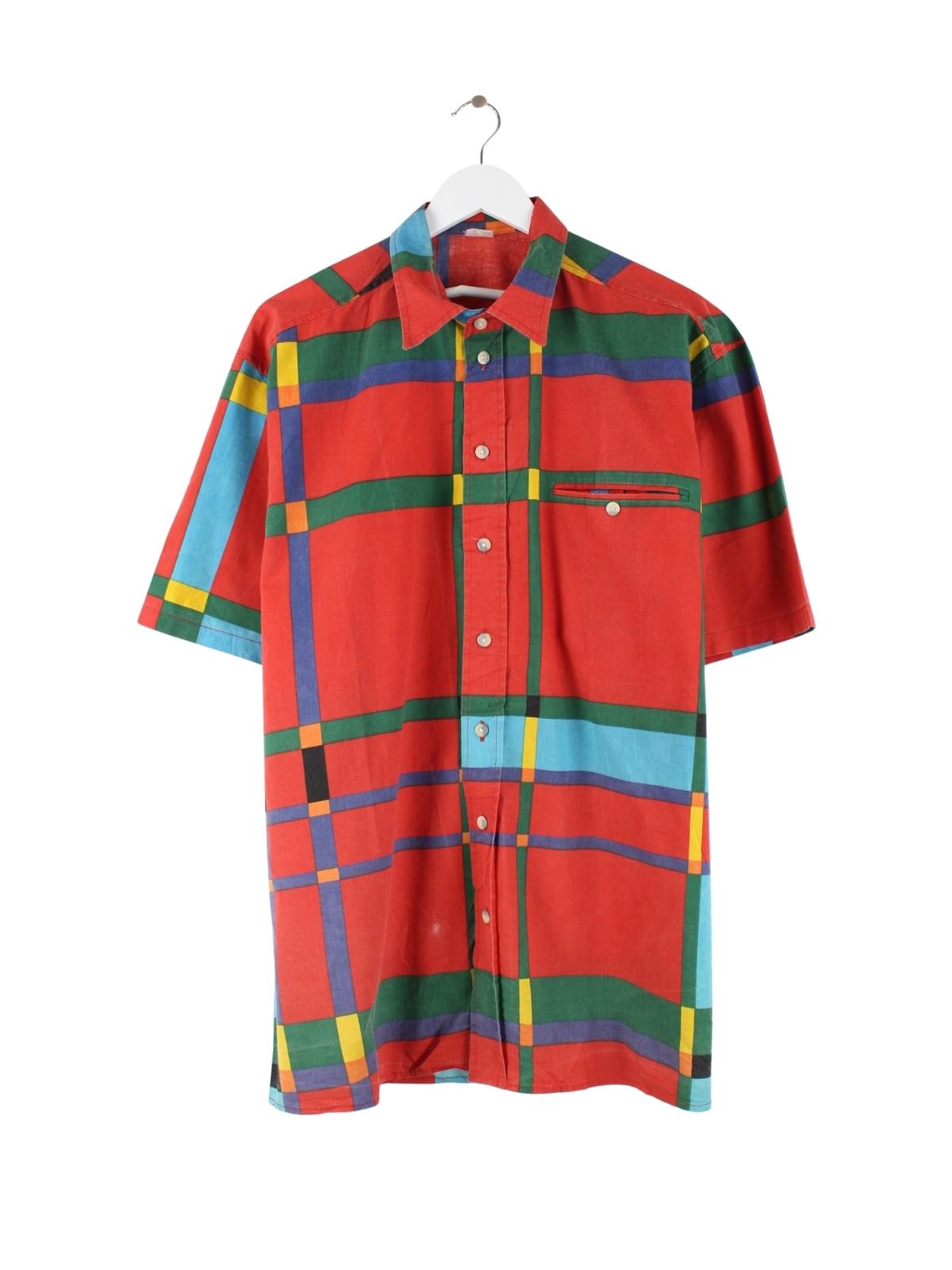 Vintage 80s Crazy Pattern Kurzarm Hemd Rot XXL