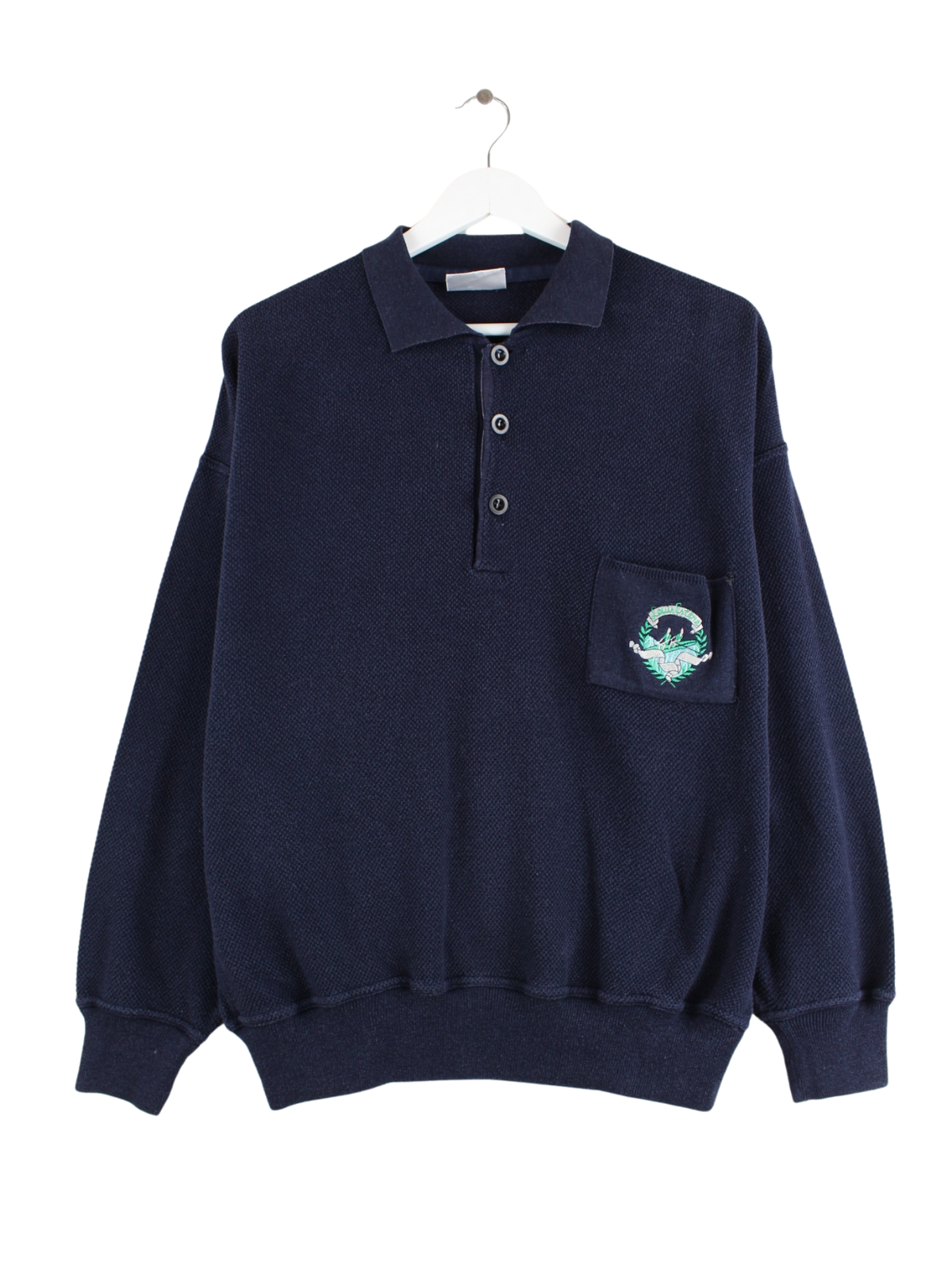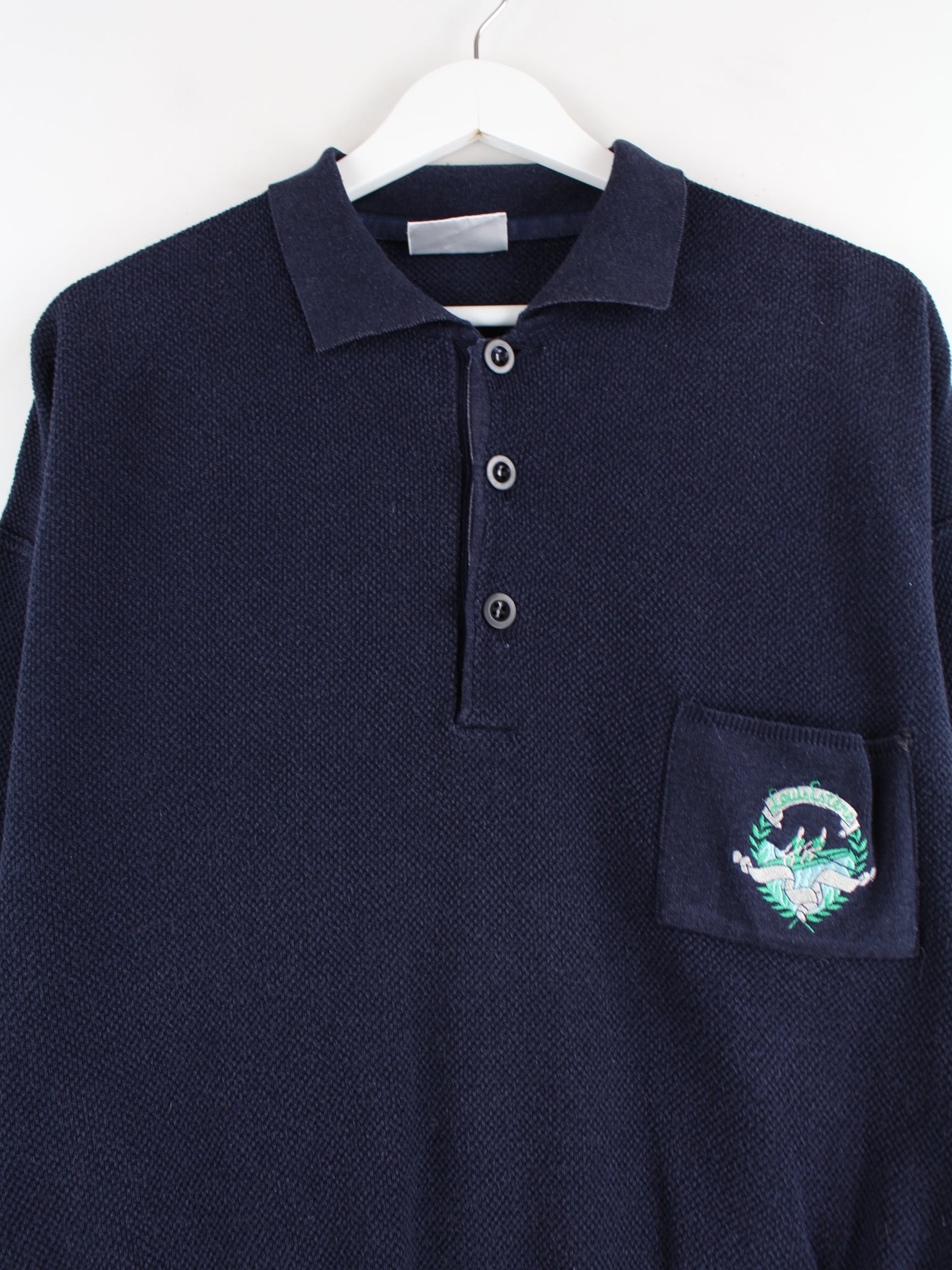 Vintage 80s Louis Estere Embroidered Polo Sweater Blue M
