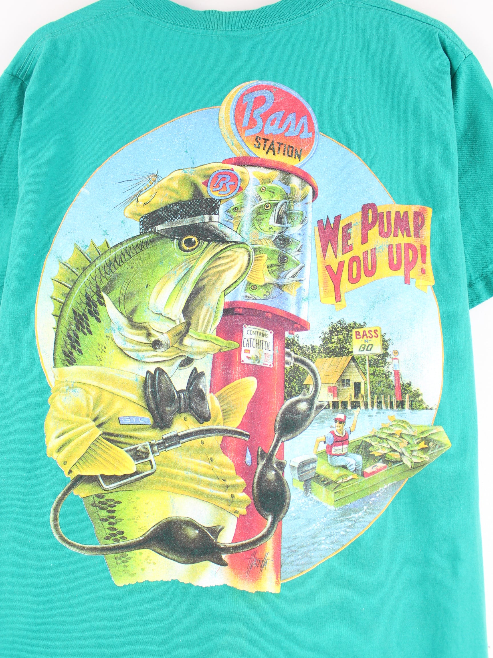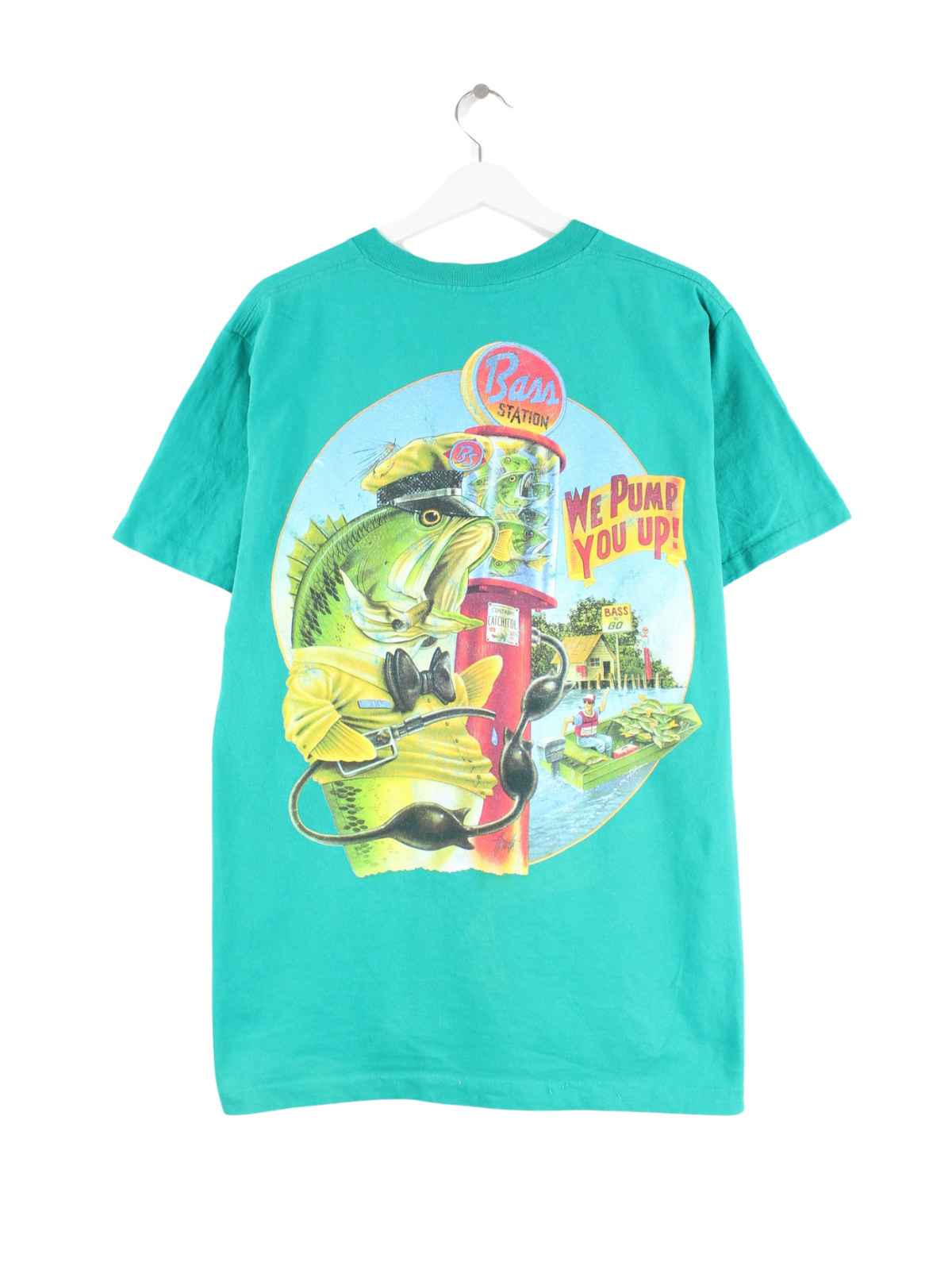 Vintage 80s Fish Pump Print Single Stitch T-Shirt Green L